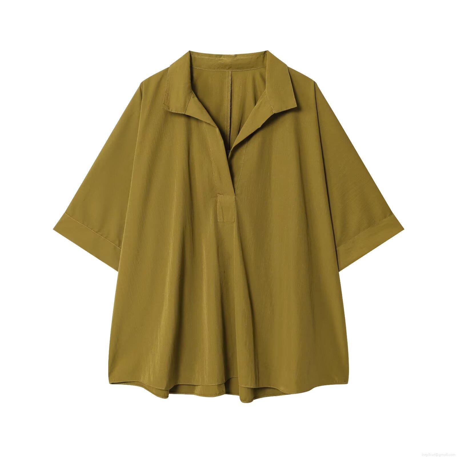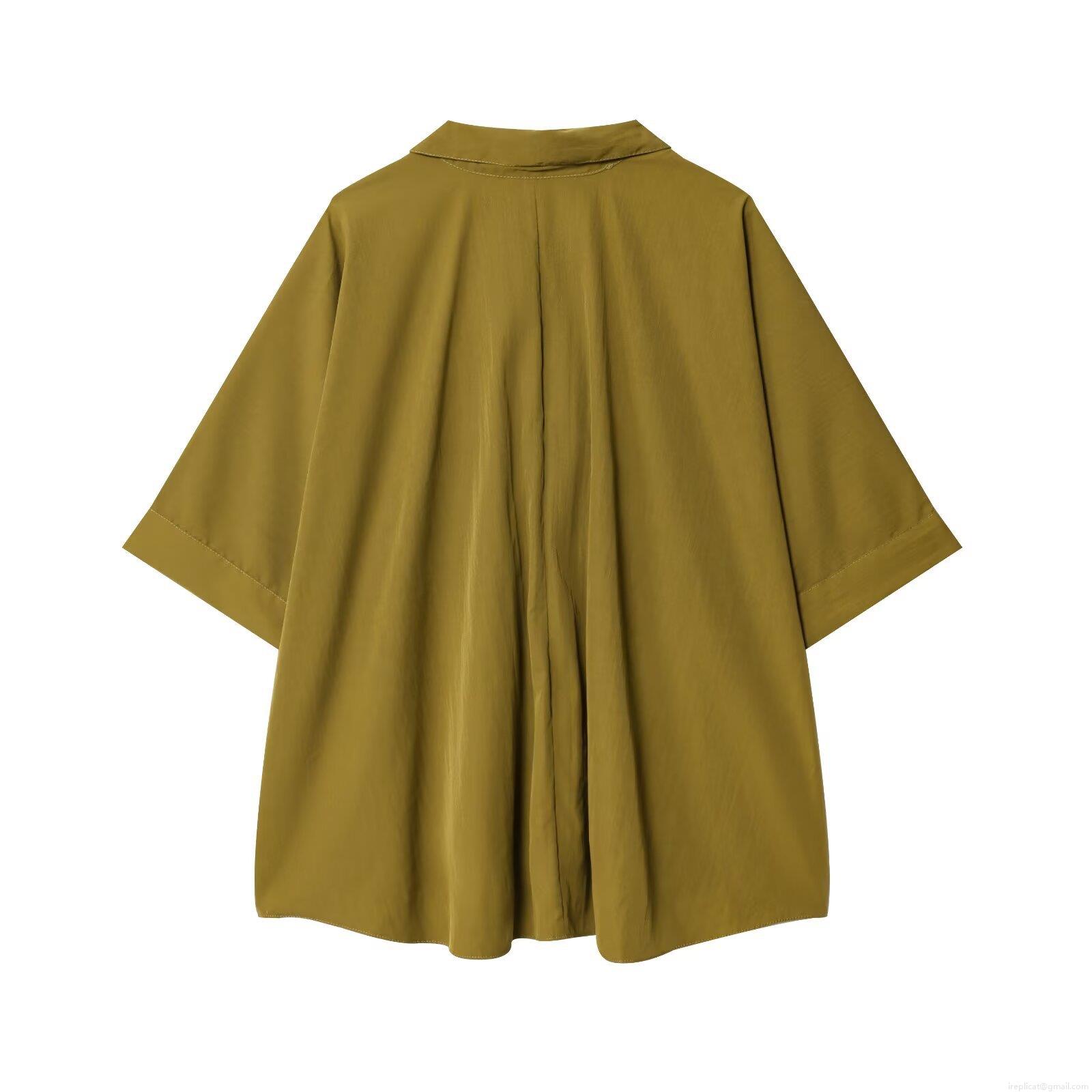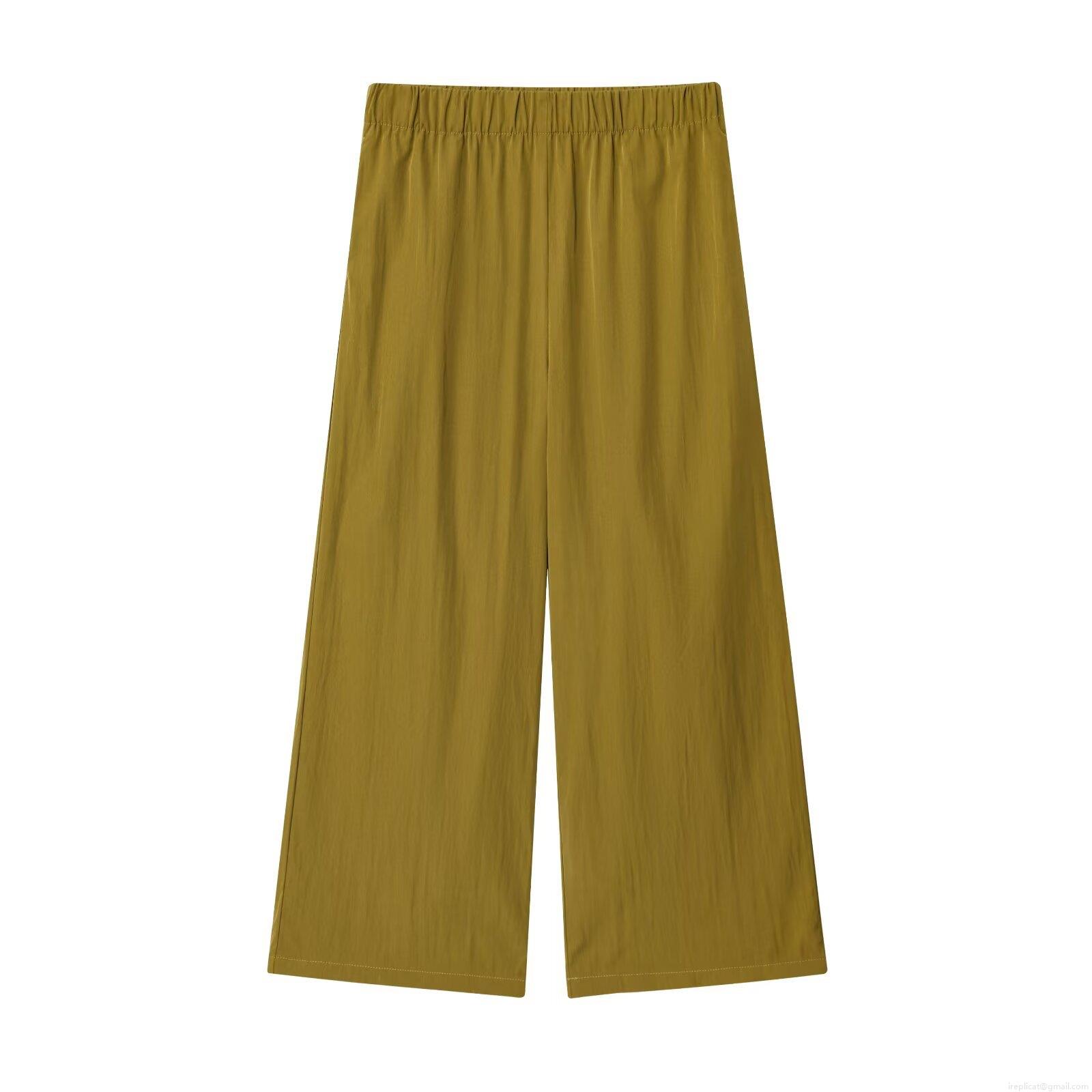 Solid Color, V-neck, Elastic Waistband, Wide-leg Pants, Sticker Bag, Polo Collar