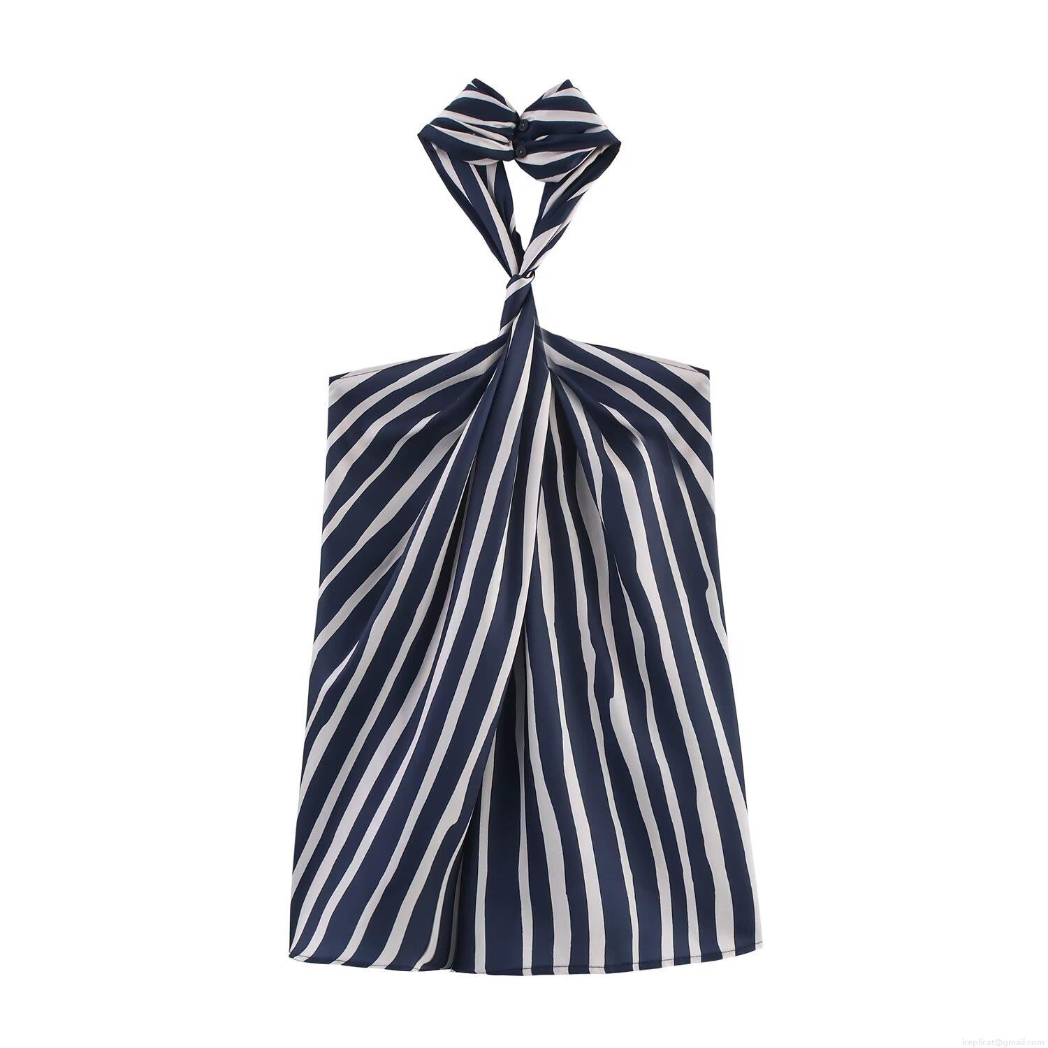 Women's Two Piece Set Striped Halter Neck Backless Top And High Waist Wide Leg Pants Summer Casual Vacation Streetwear Outfits
