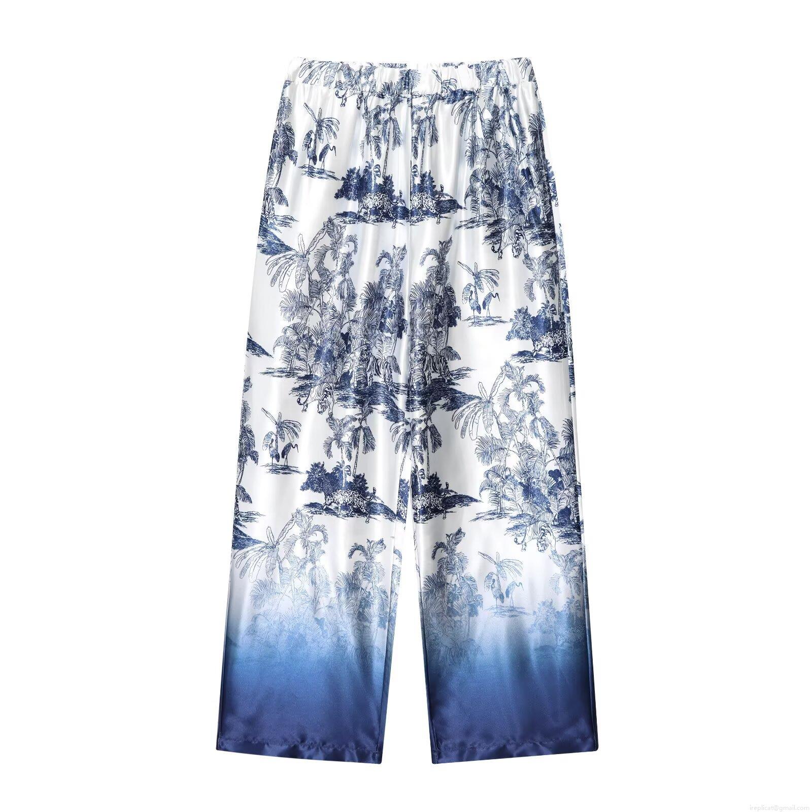 • Women's Two Piece Set Toile de Jouy Tropical Jungle Print Long Sleeve Button Down Shirt And Wide Leg Gradient Pants Casual Elegant Vacation Outfits