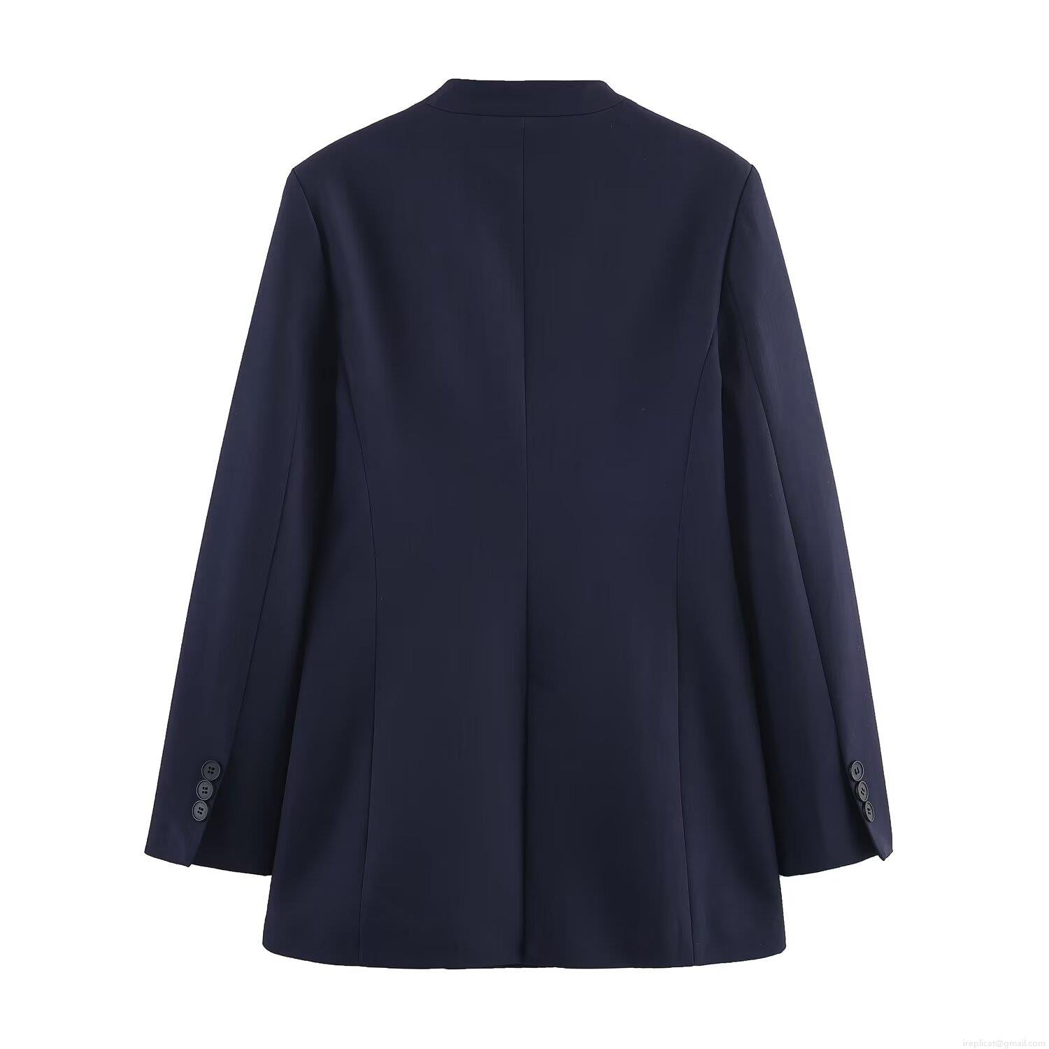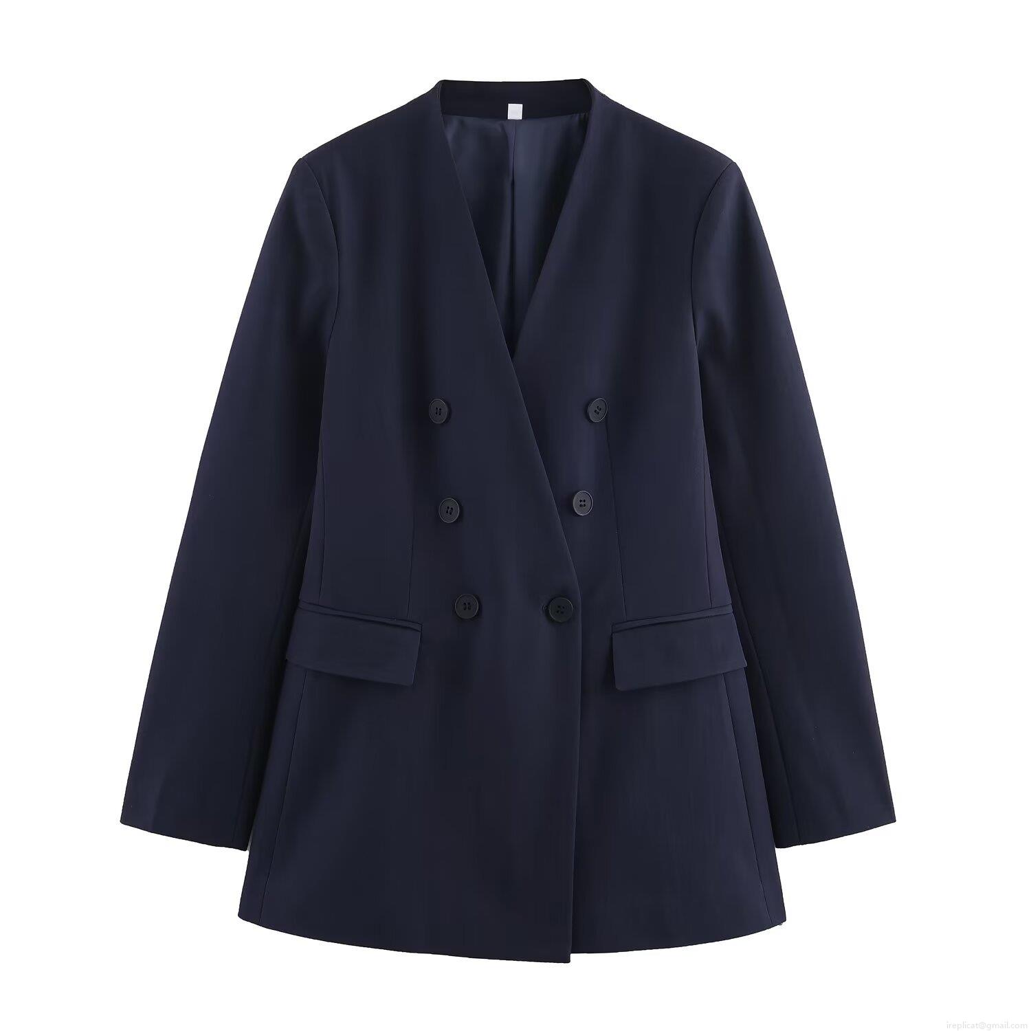 Solid Color, V-neck, Collage, Double-breasted