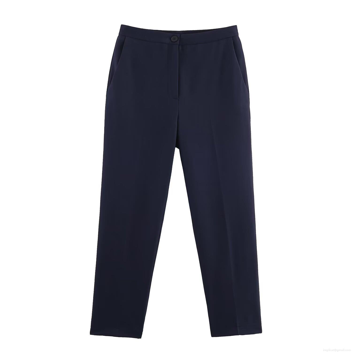• Women's Two Piece Suit Set Double Breasted V Neck Blazer And High Waist Straight Leg Trousers Navy Blue Polyester Modern Office Business Formal Street Style Outfit