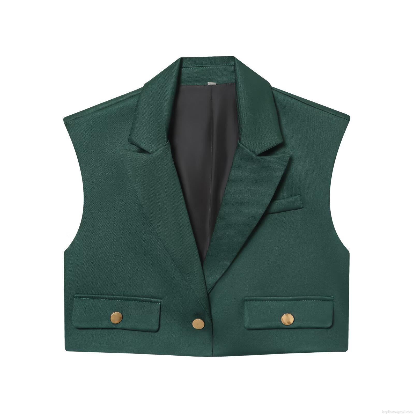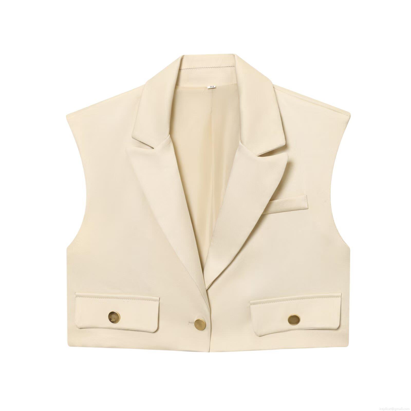 • Women's Two Piece Suit Set Sleeveless Short Blazer Vest And High Waist Wide Leg Pants Outfits Business Casual Solid Color Streetwear With Metal Buttons