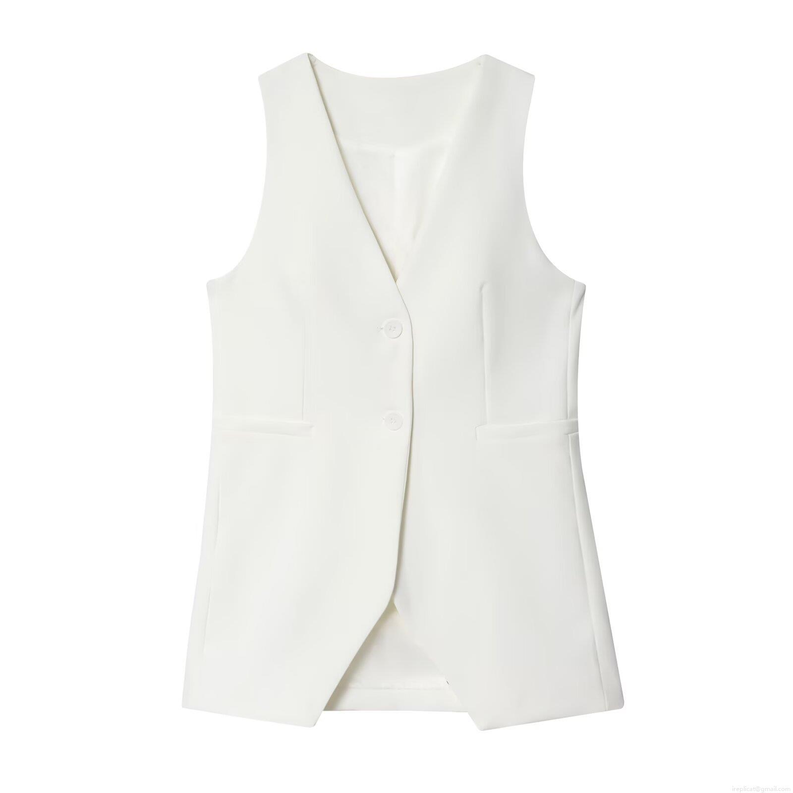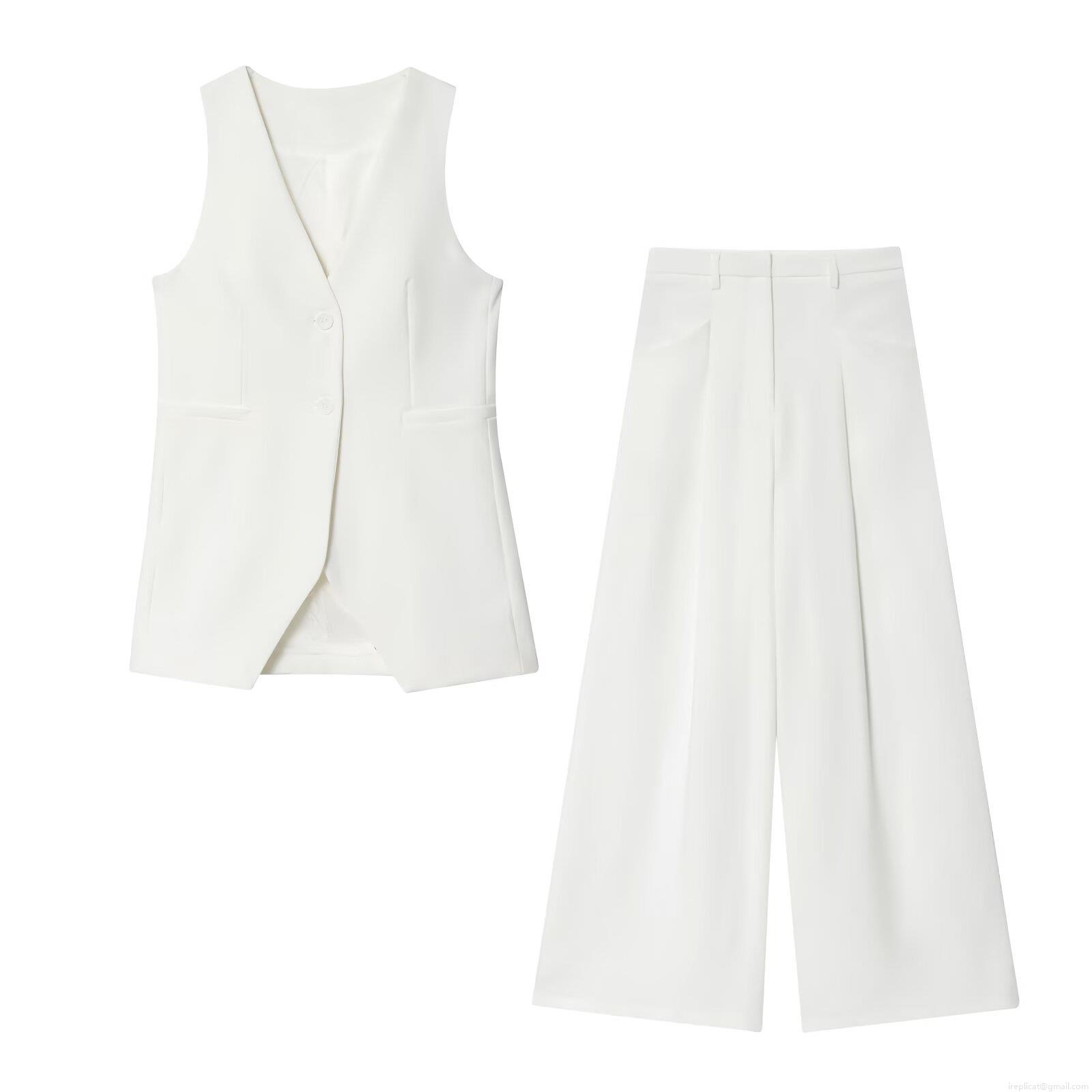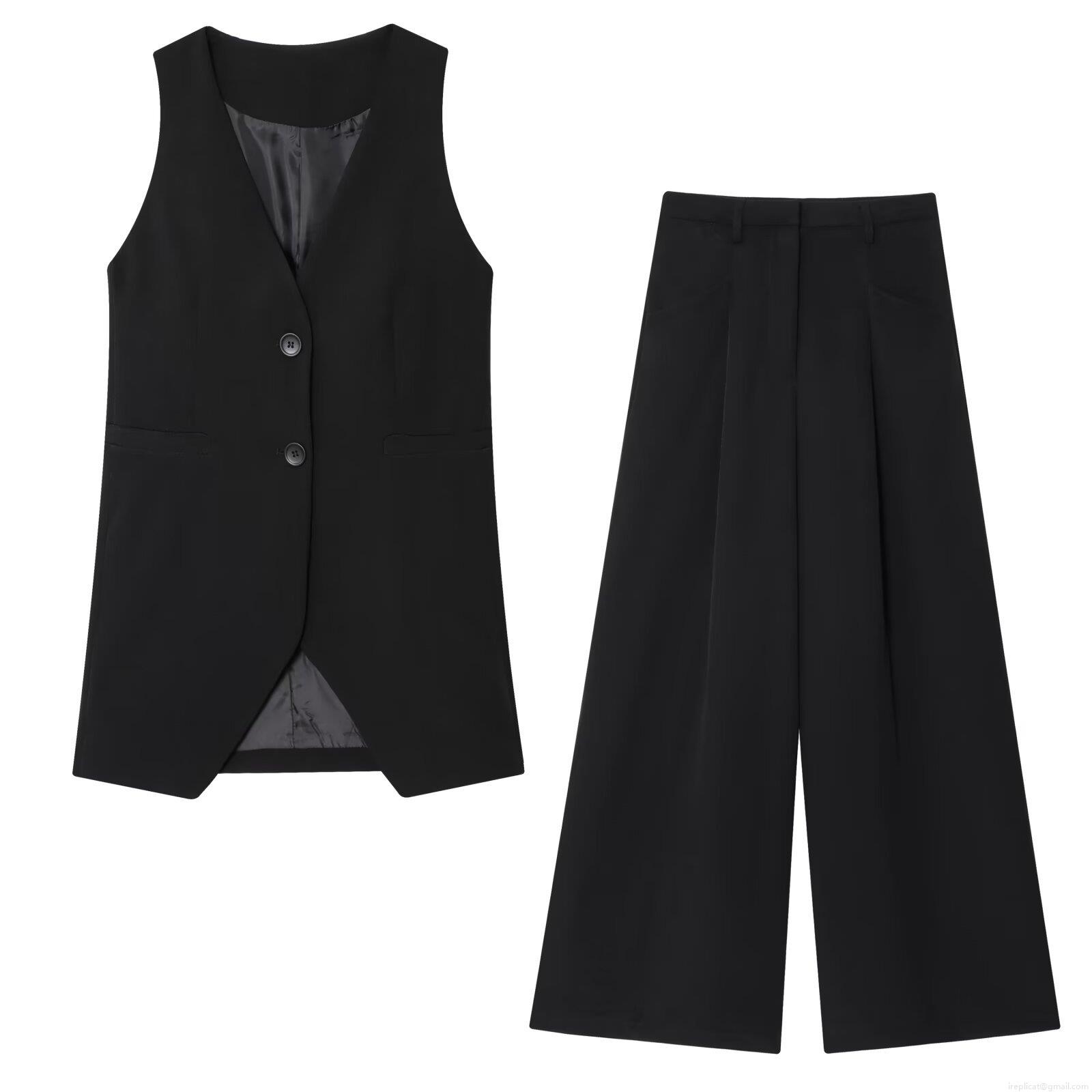 • Women's Two Piece Suit Set V Neck Single Breasted Sleeveless Blazer Vest And High Waist Wide Leg Pants Business Work Outfits