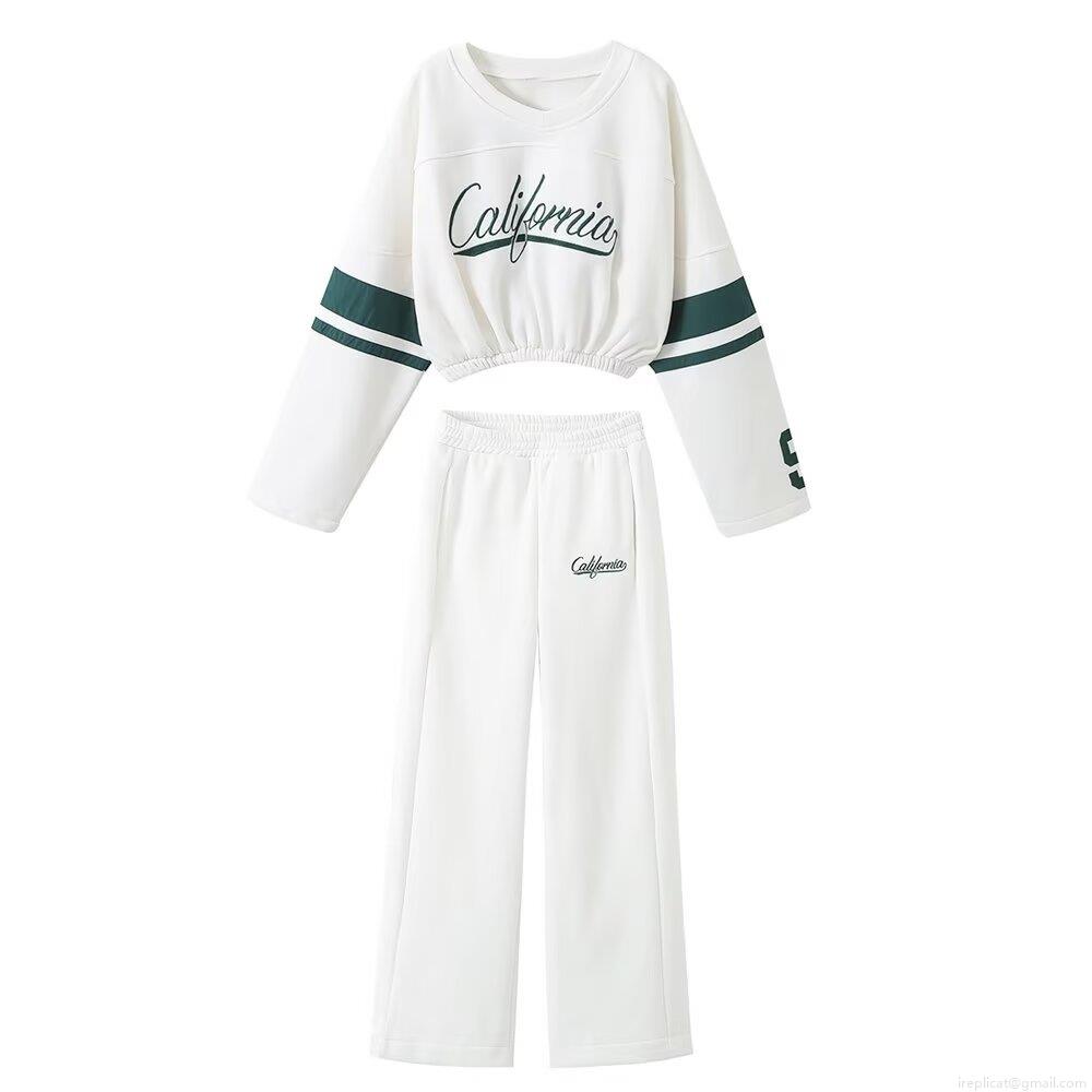• Women's Two Piece Sweatsuit Set California Letter Print Long Sleeve Cropped Pullover And High Waist Wide Leg Jogger Pants Casual Sporty Streetwear Tracksuit
