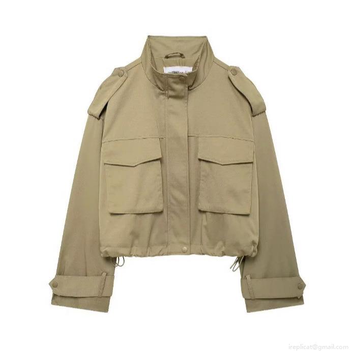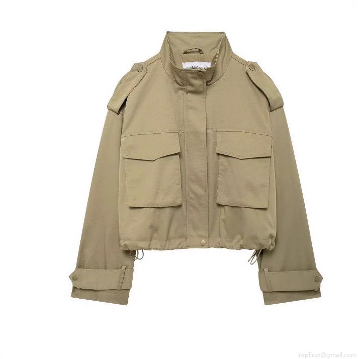 • Women's Two Piece Utility Set Khaki Cotton Blend Short Workwear Jacket And High Waist Wide Leg Pants Casual Streetwear Outfits Sets