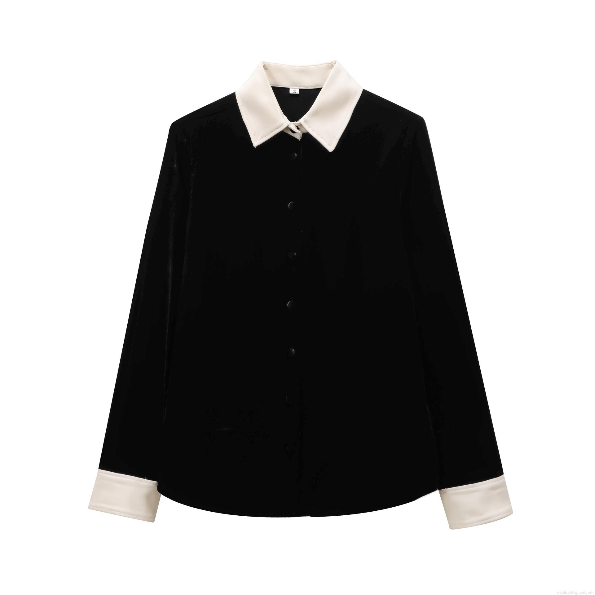 • Women's Two Piece Velvet Tracksuit Set Long Sleeve Color Block Lapel Shirt and Wide Leg Pants Casual Streetwear Loungewear Set