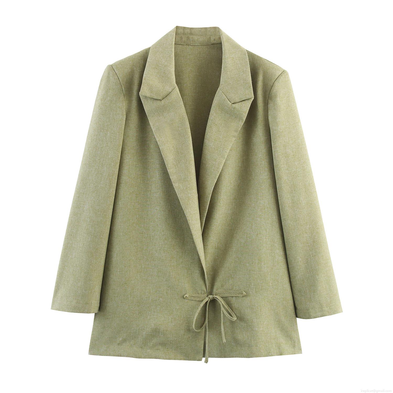 • Women's Two-Piece Pant Set Linen-Like Polyester Notch Lapel Belted Blazer Long Trousers Commuter Elegant Office Casual Outfit For Ladies