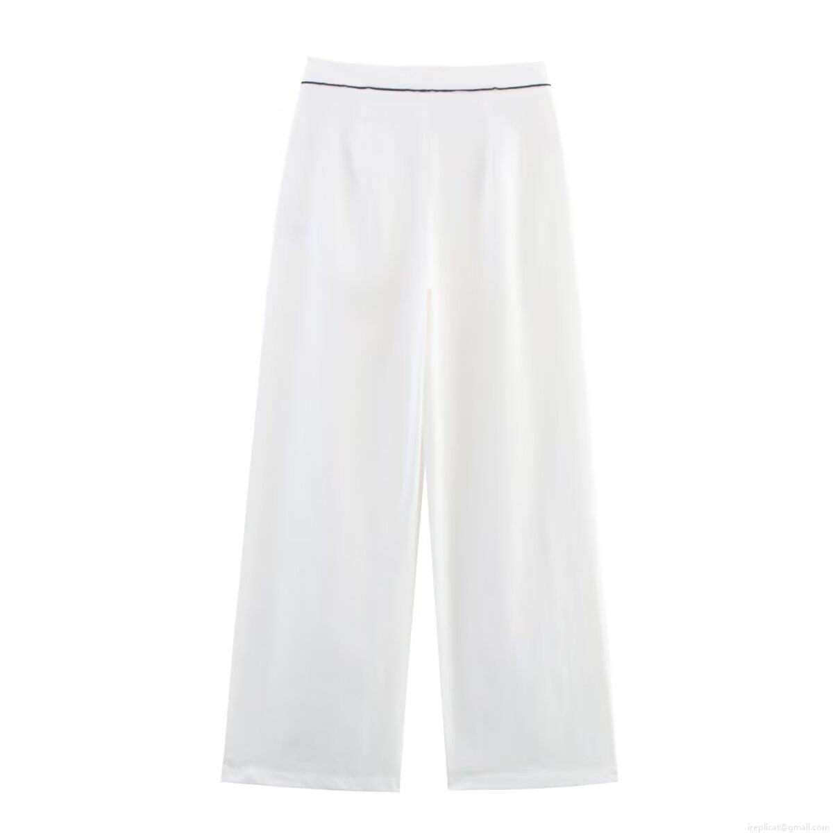 • Women's Two-Piece Set Contrast Piping Wrap Tie Long Sleeve Jacket And Wide Leg Pants Casual Minimalist Lounge Vacation Outfit For Lady