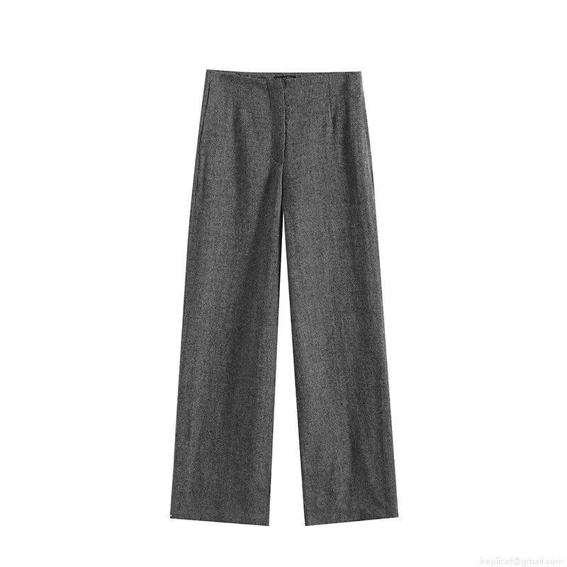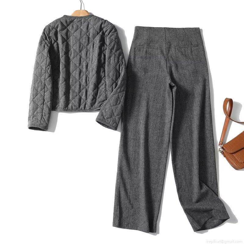 • Women's Two-Piece Set Dark Gray Quilted Bomber Jacket And Wide Leg Pants Streetwear Casual Woolen Texture Long Sleeve Top High Waist Trousers Outfit