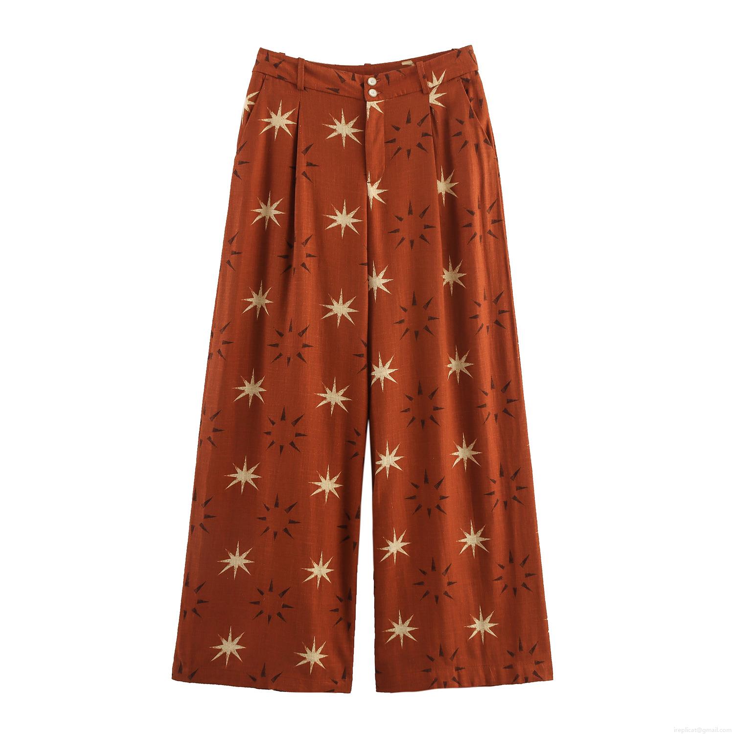 Sun, Geometric Shapes, Starlight, Printing, Wide-leg Pants, Retro Buttons, Neckband Design