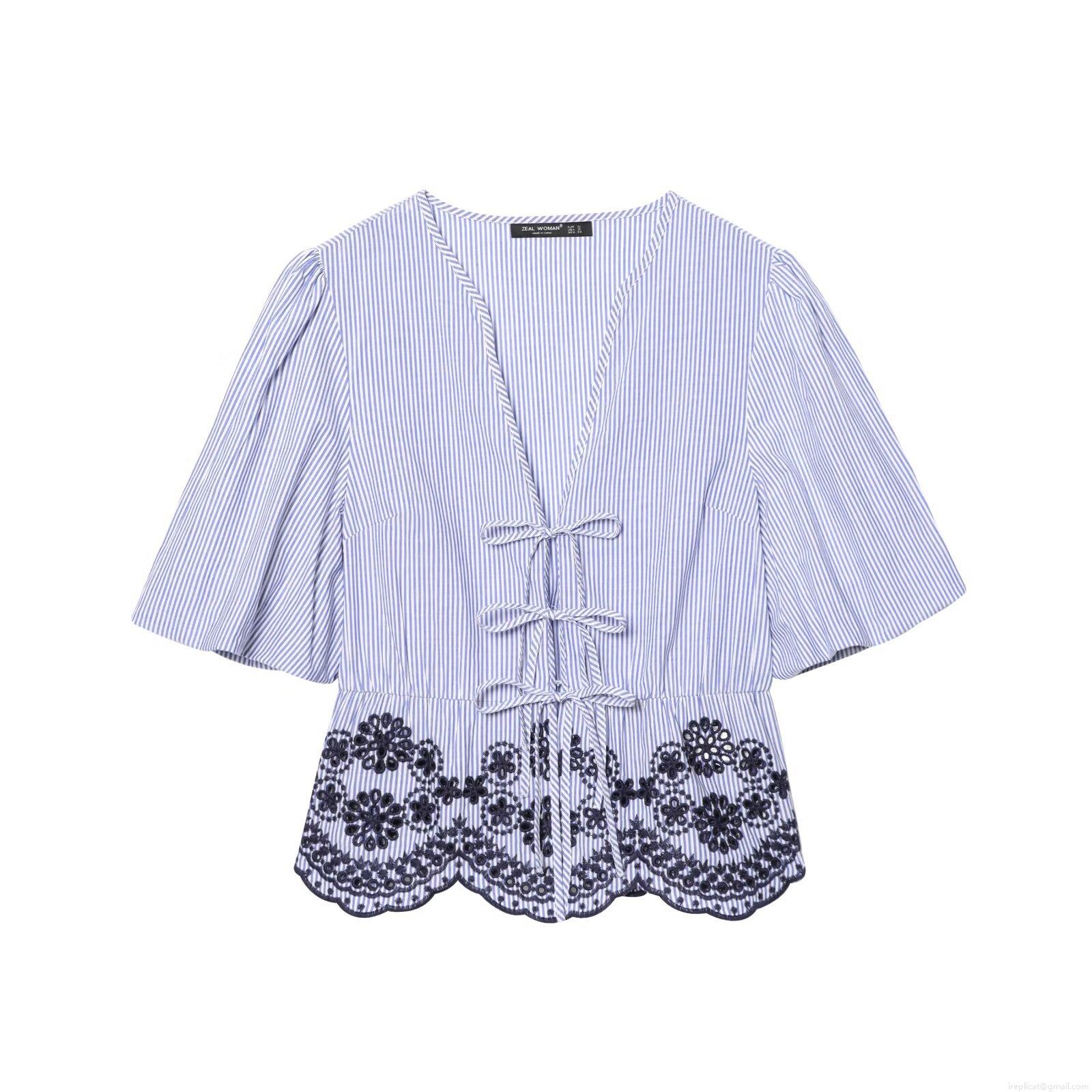 Splice, Bow, Embroidery, Pinstripes, Hollow Out, Lace, Floral Embroidery