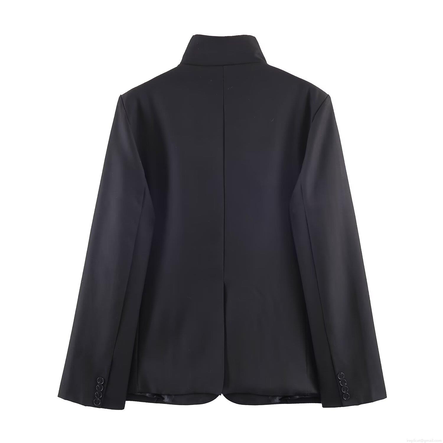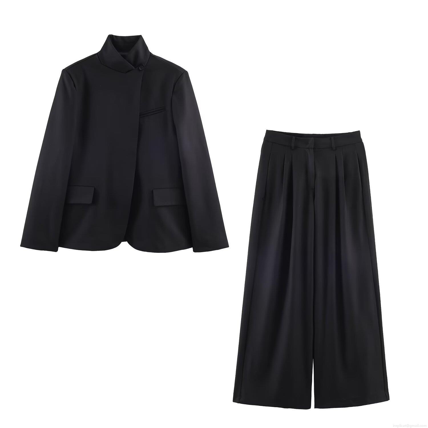 • Women's Two-Piece Suit Set Polyester Spandex Asymmetric Stand Collar Blazer Jacket And High Waist Wide Leg Pleated Pants Office Lady Casual Elegant Solid Color Outfit Black