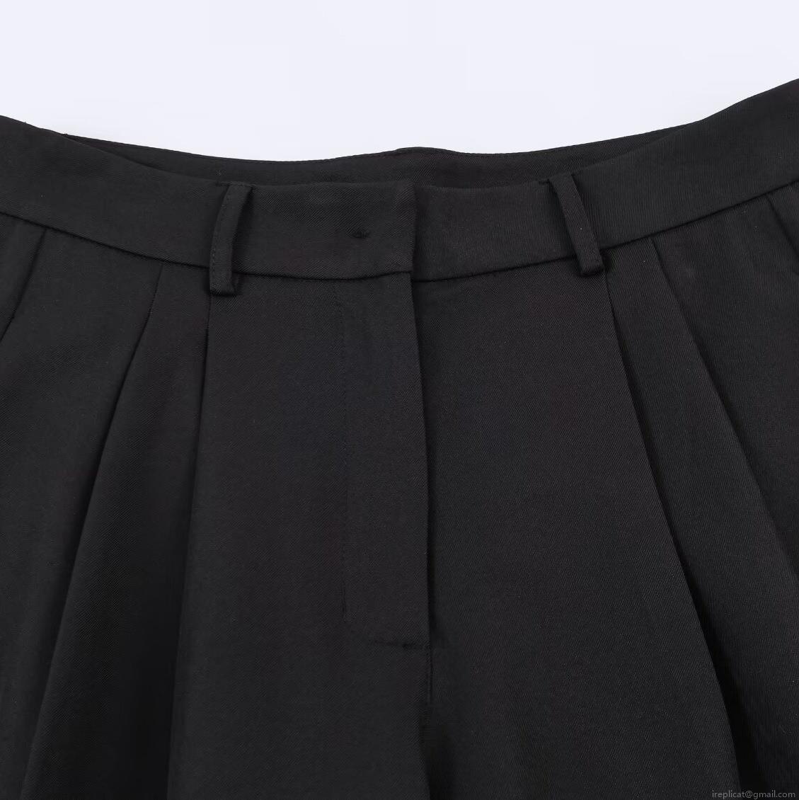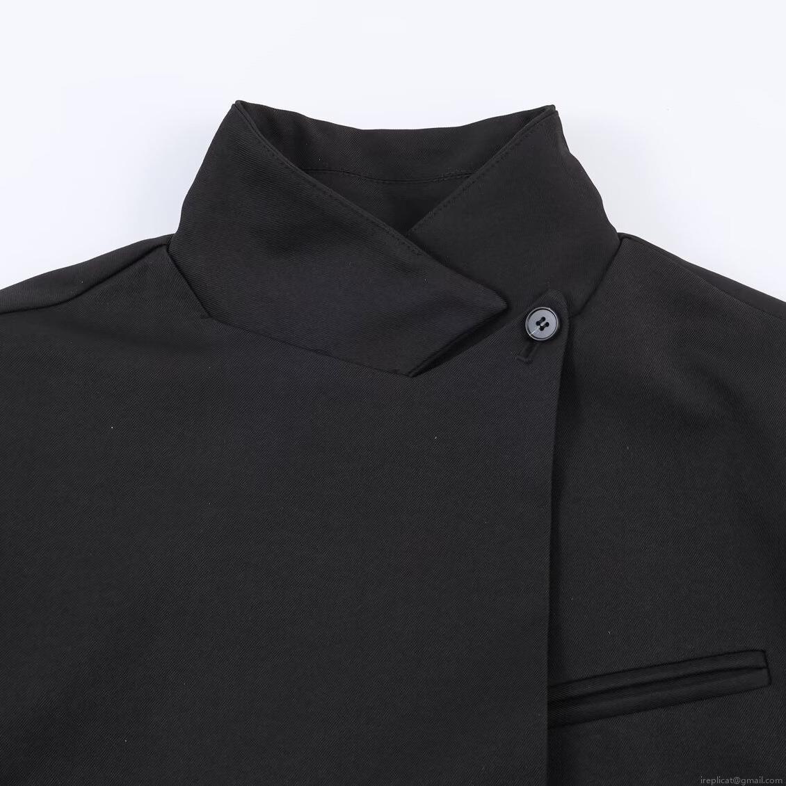 Solid Color, Stand-up Collar, Pleats, Wide-leg, Asymmetrical Cut