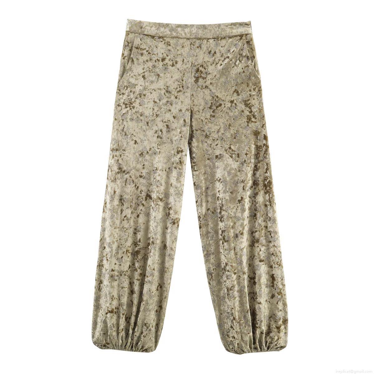 Marble, Velvet, Rose, Lace, Lantern Pants, Silver Powder Printing