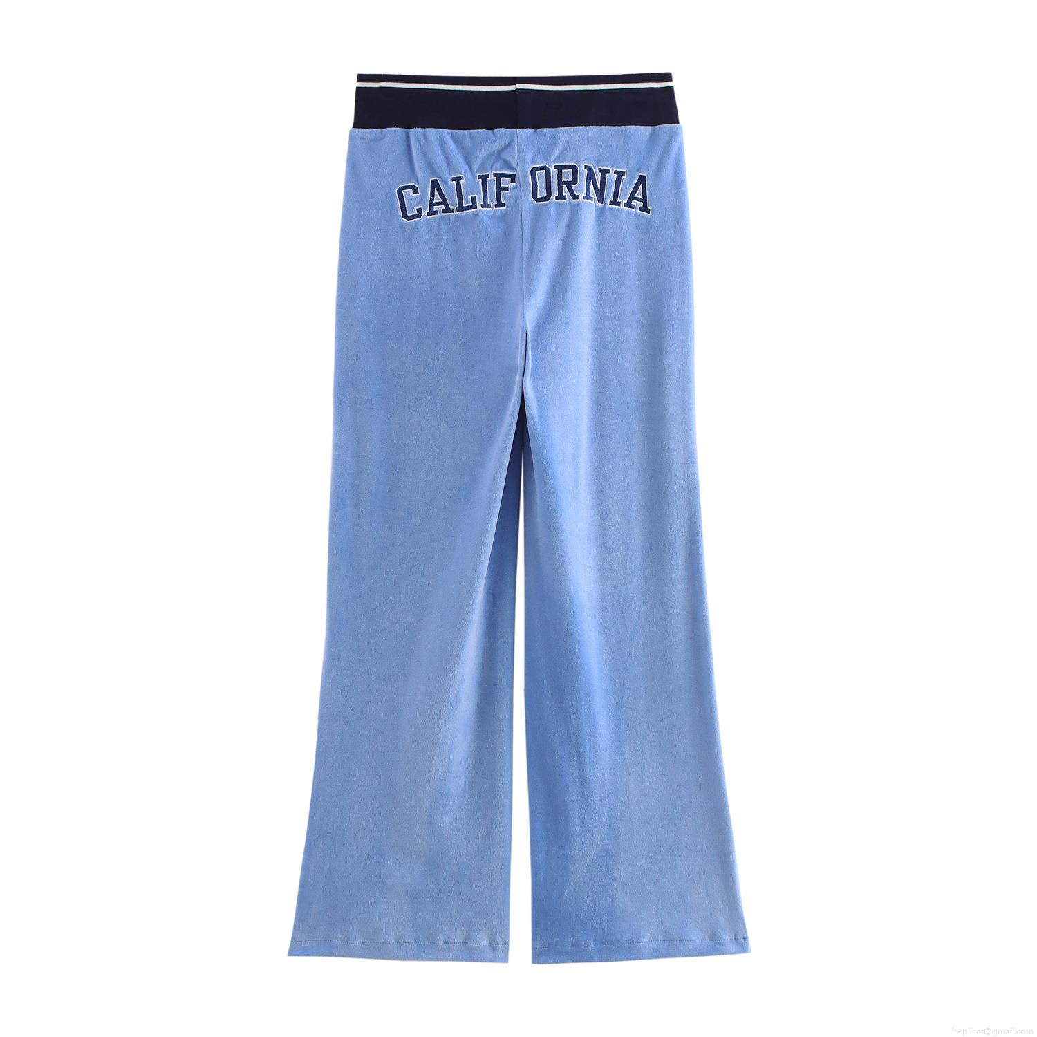 • Women's Velvet Two Piece Tracksuit Set California 97 Embroidery Color Block Zip Up Jacket and Wide Leg Pants Casual Velour Loungewear Set
