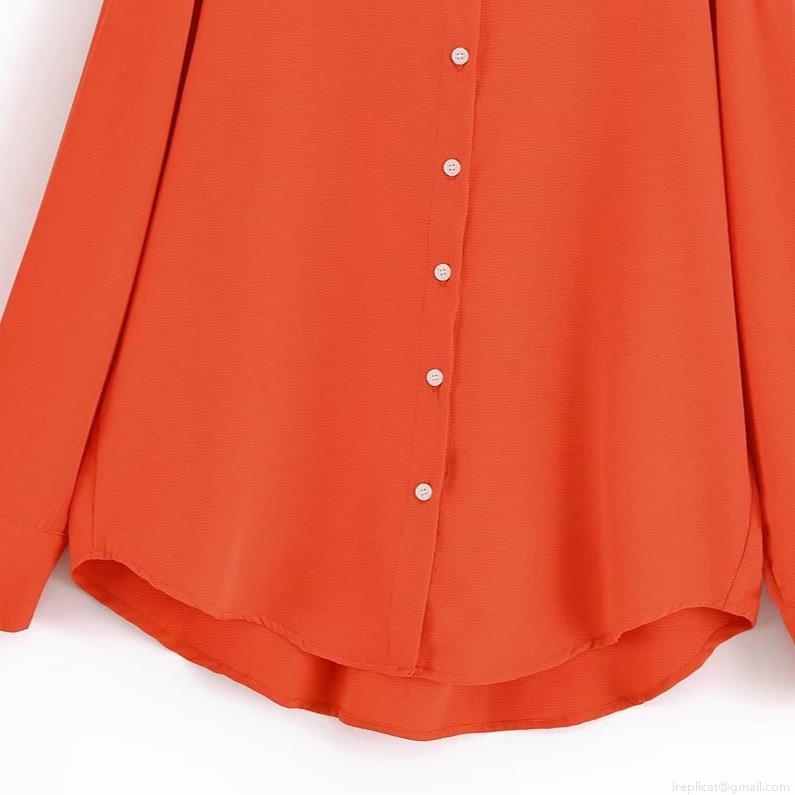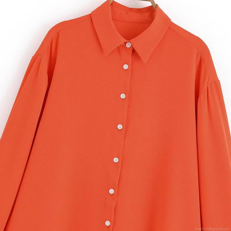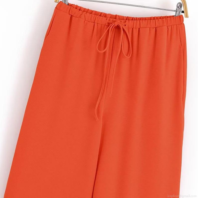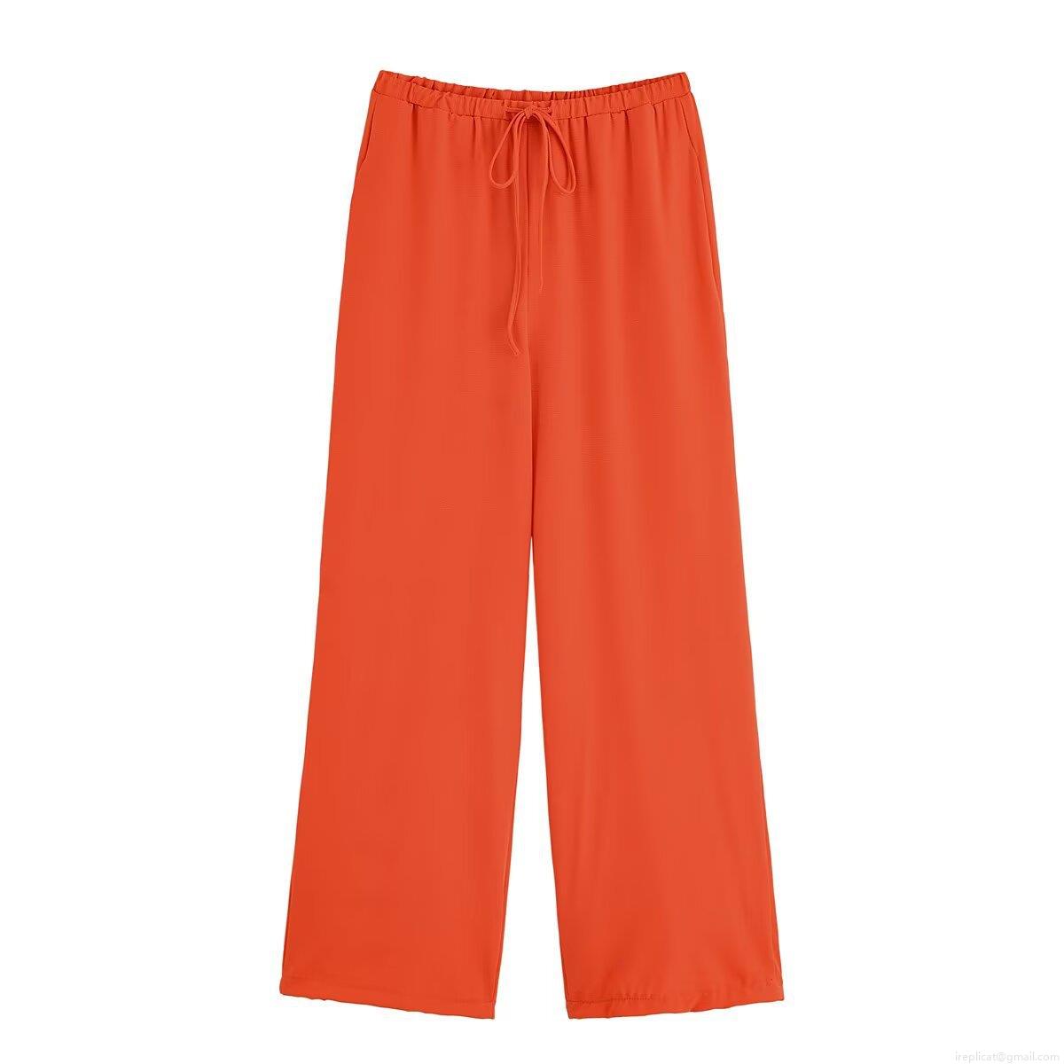 • Women's Vibrant Orange Wrinkled Textured Casual Two Piece Set Long Sleeve Button Down Shirt And High Waist Wide Leg Drawstring Pants Summer Outfit
