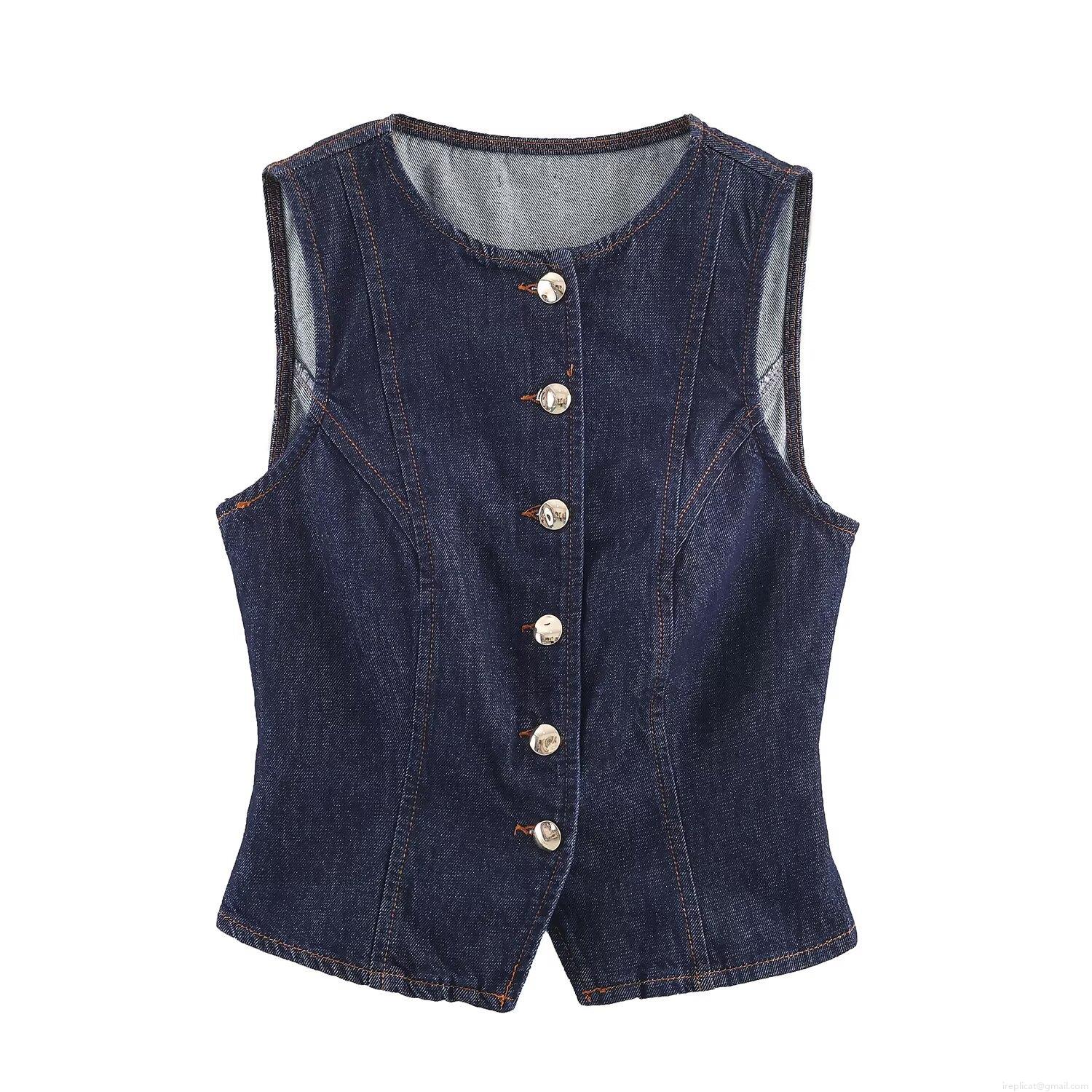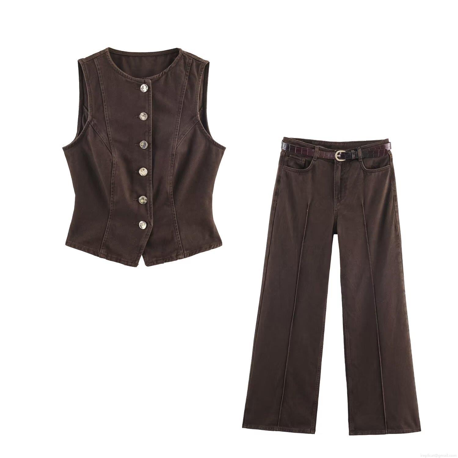 • Women's Vintage Denim Vest And High Waist Pants Set Sleeveless Button Down Waistcoat With Belt Straight Leg Trousers Casual Streetwear Two Piece Outfit