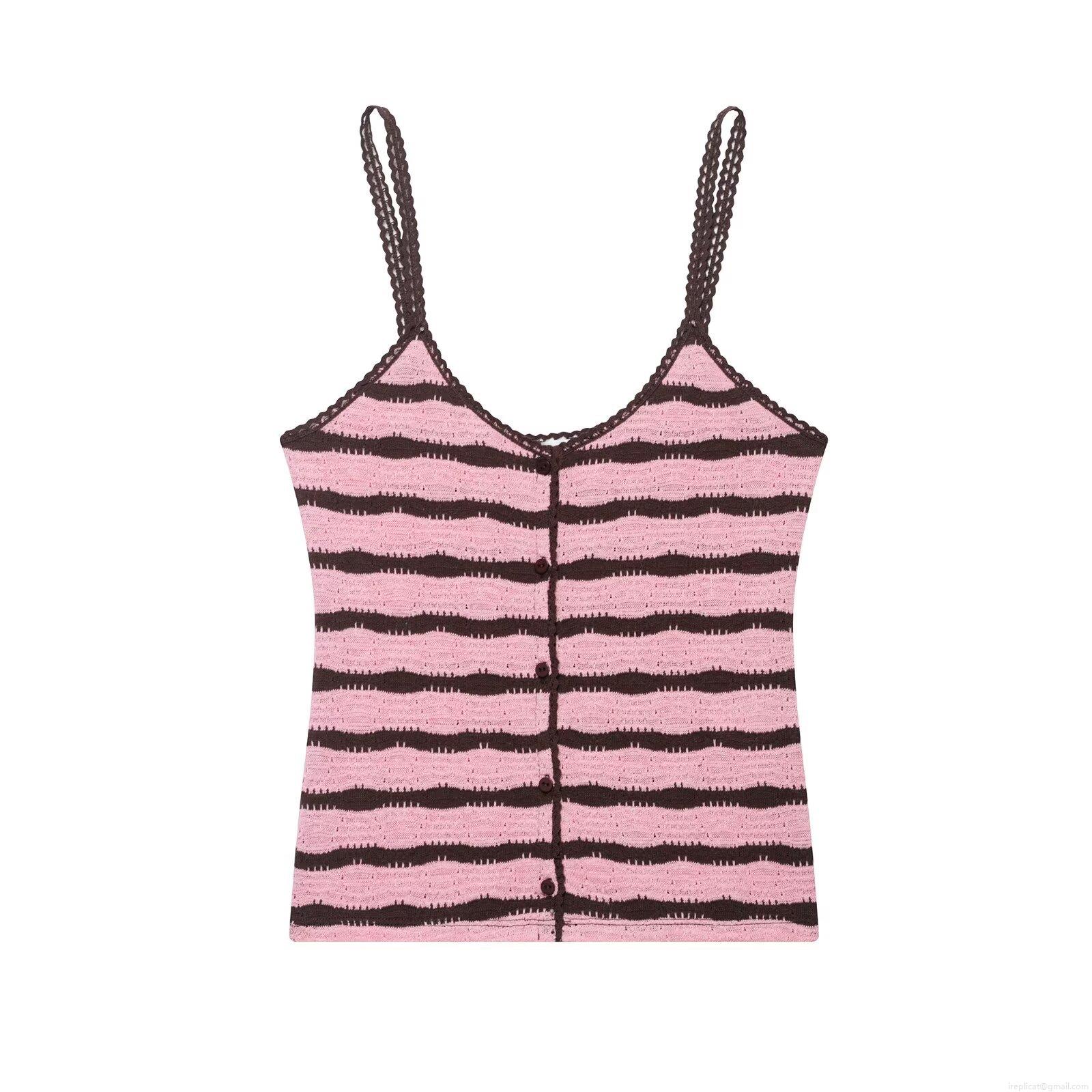 • Women's Vintage Knit Two Piece Set Striped Lace Trim V-Neck Tank Top and High Waist Flare Pants Set Streetwear Outfits
