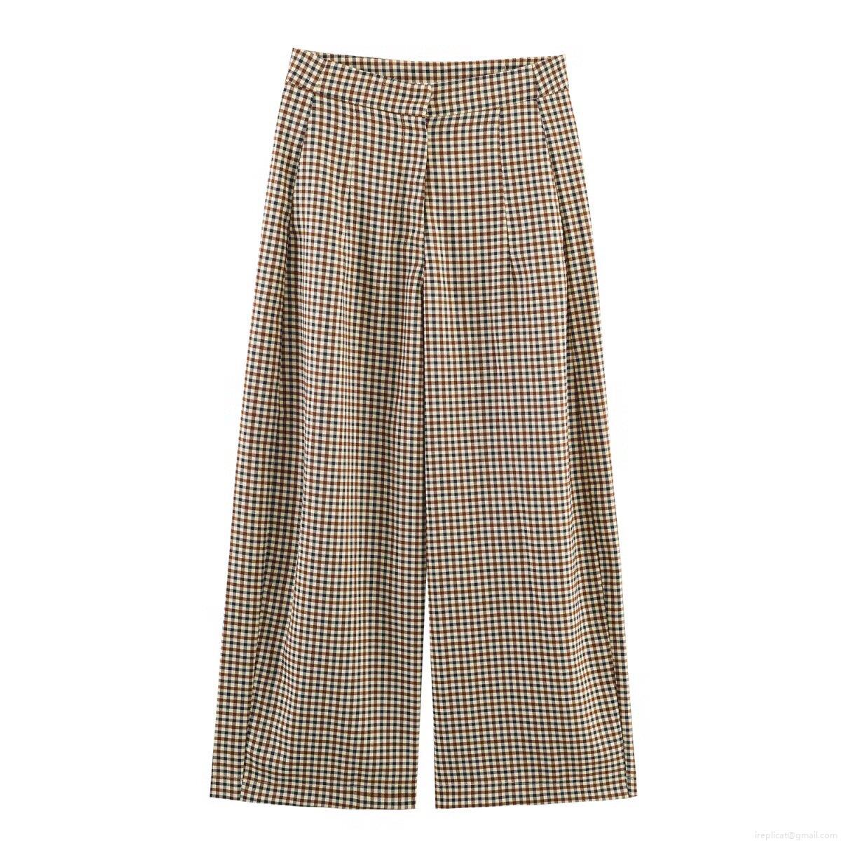 • Women's Vintage Plaid Blazer and Wide Leg Pants Set 2-Piece Woven Polyester Houndstooth Checked Suit Outfit for Office Casual Streetwear