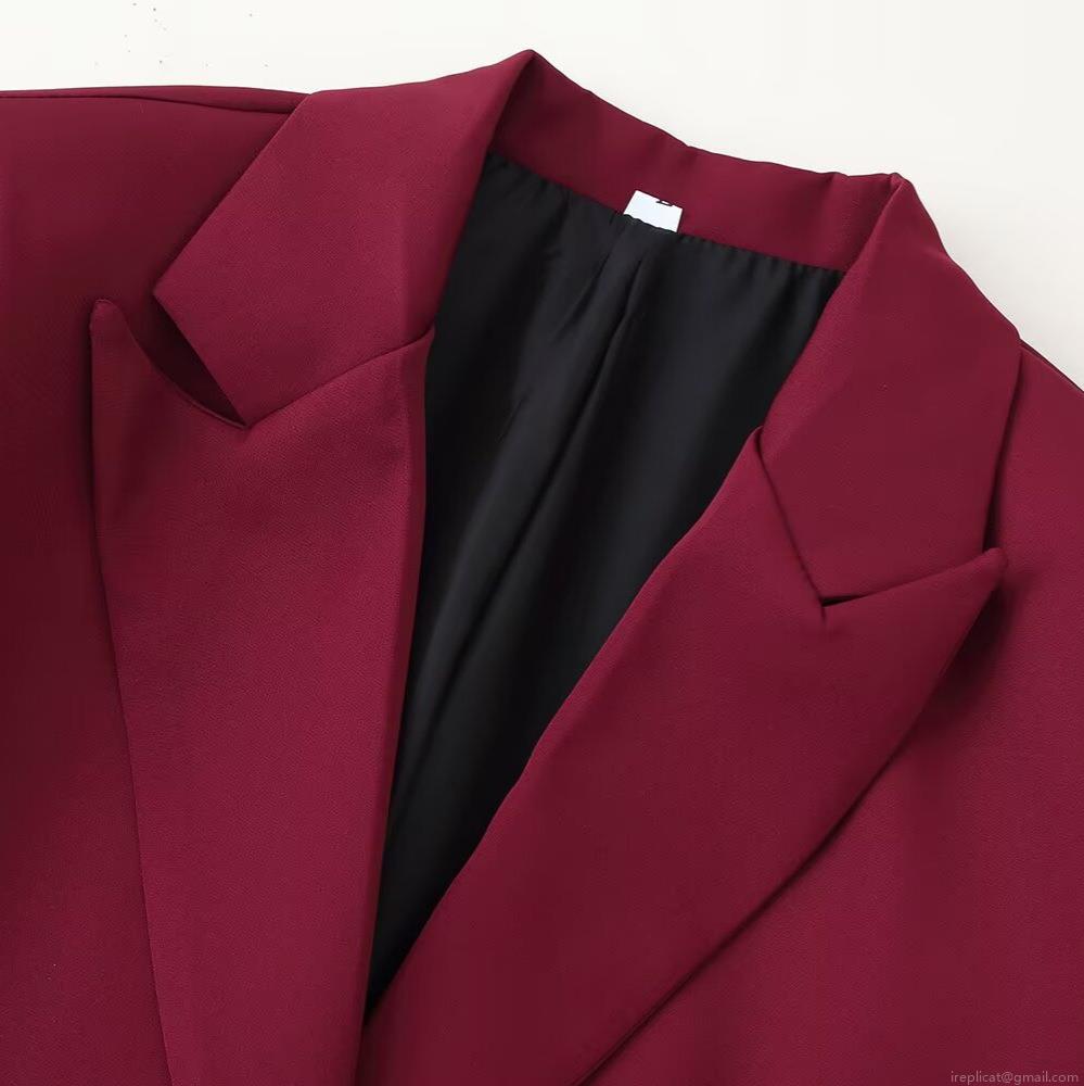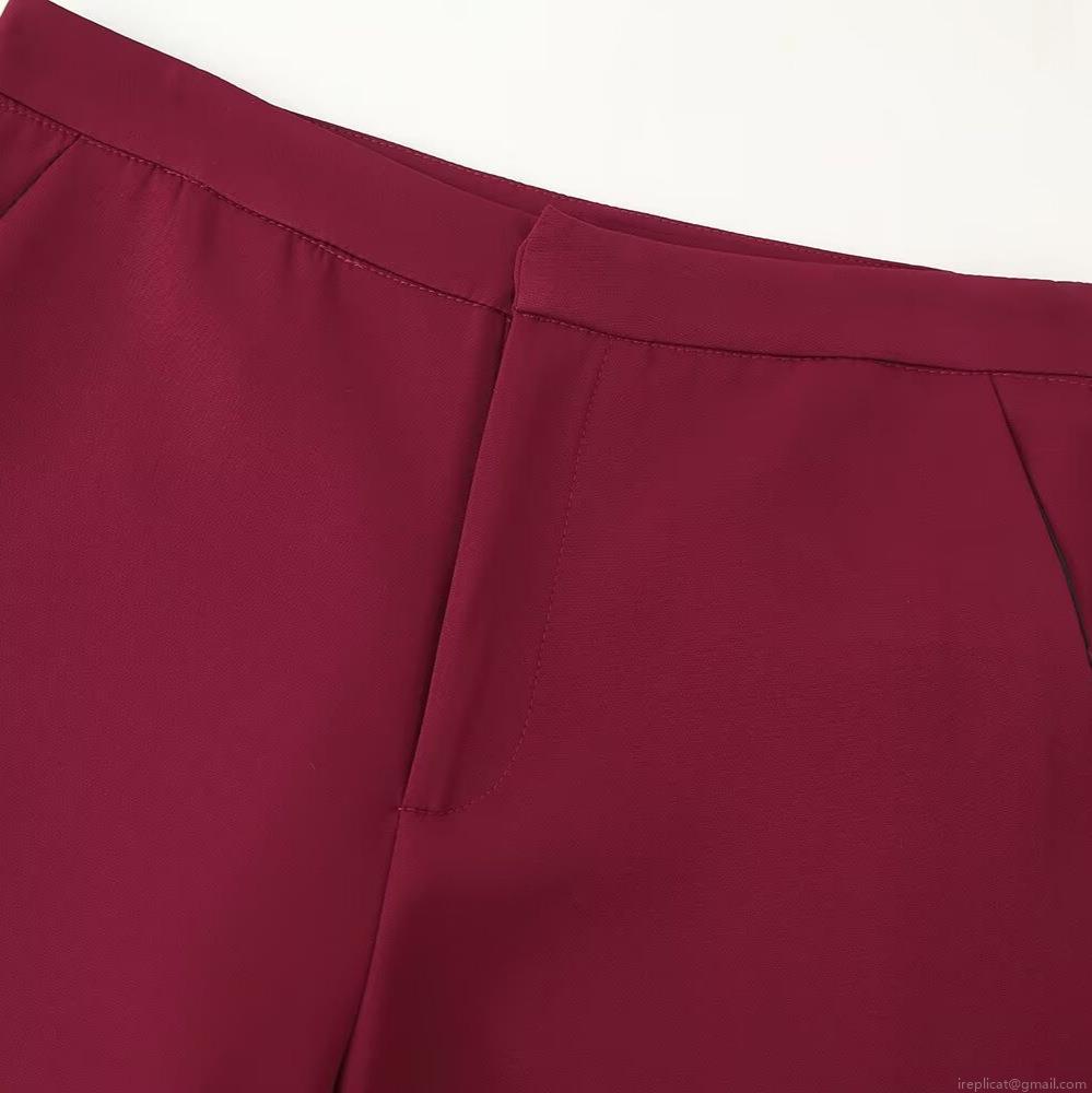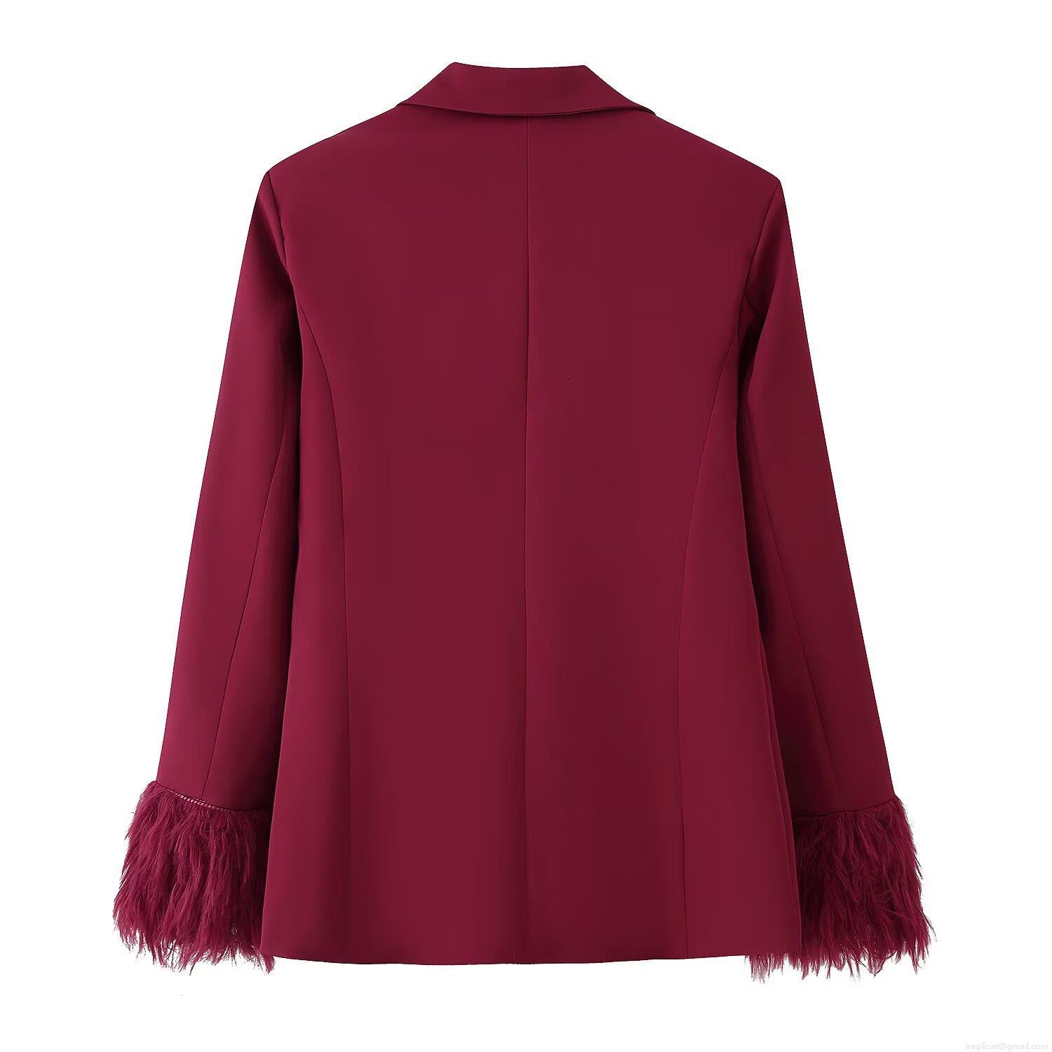 • Women's Wine Red Slim Fit Suit Set Elegant Feather Cuff Sleeve Single Breasted Blazer and Straight Leg Pants Formal Commute Fashion Two Piece Outfit