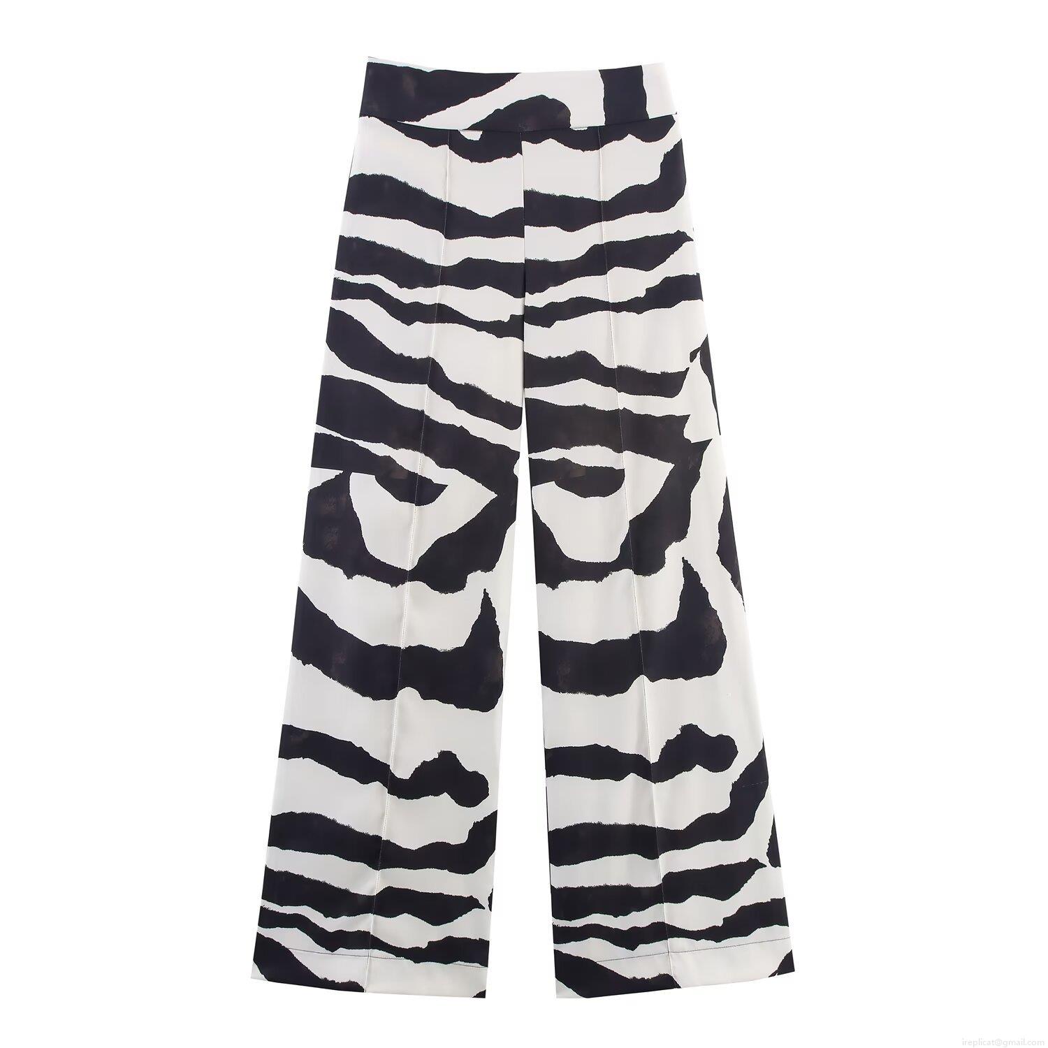 • Women's Zebra Print Double-Breasted Blazer Jacket and High Waist Wide Leg Pants 2-Piece Set Polyester Long Sleeve Animal Print Western Streetwear Casual Suit Outfits