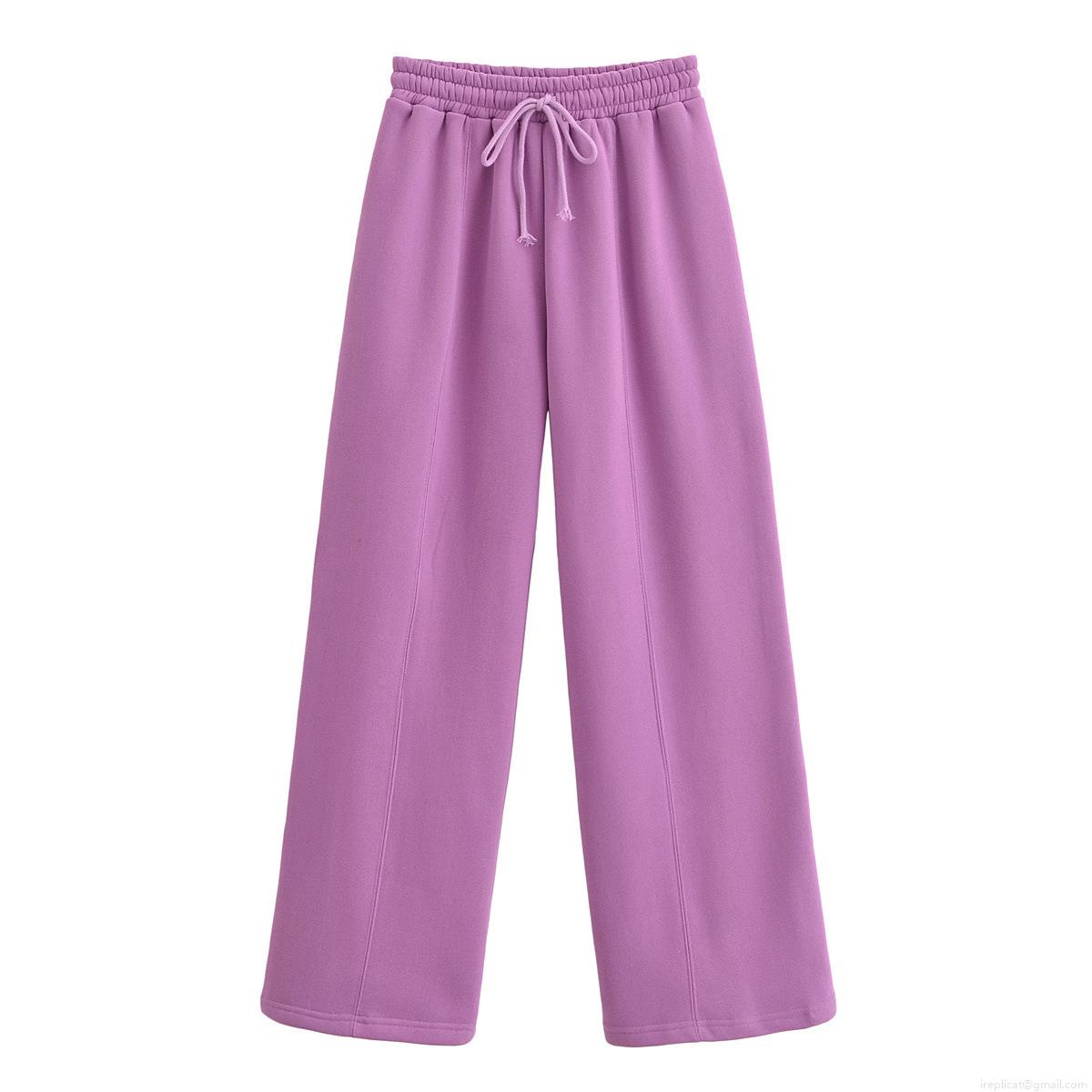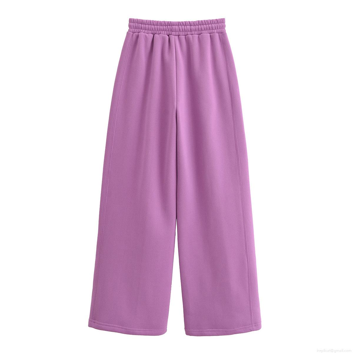 Solid Color, Splice, Zipper, Ribbed Decoration, Wide-leg Design