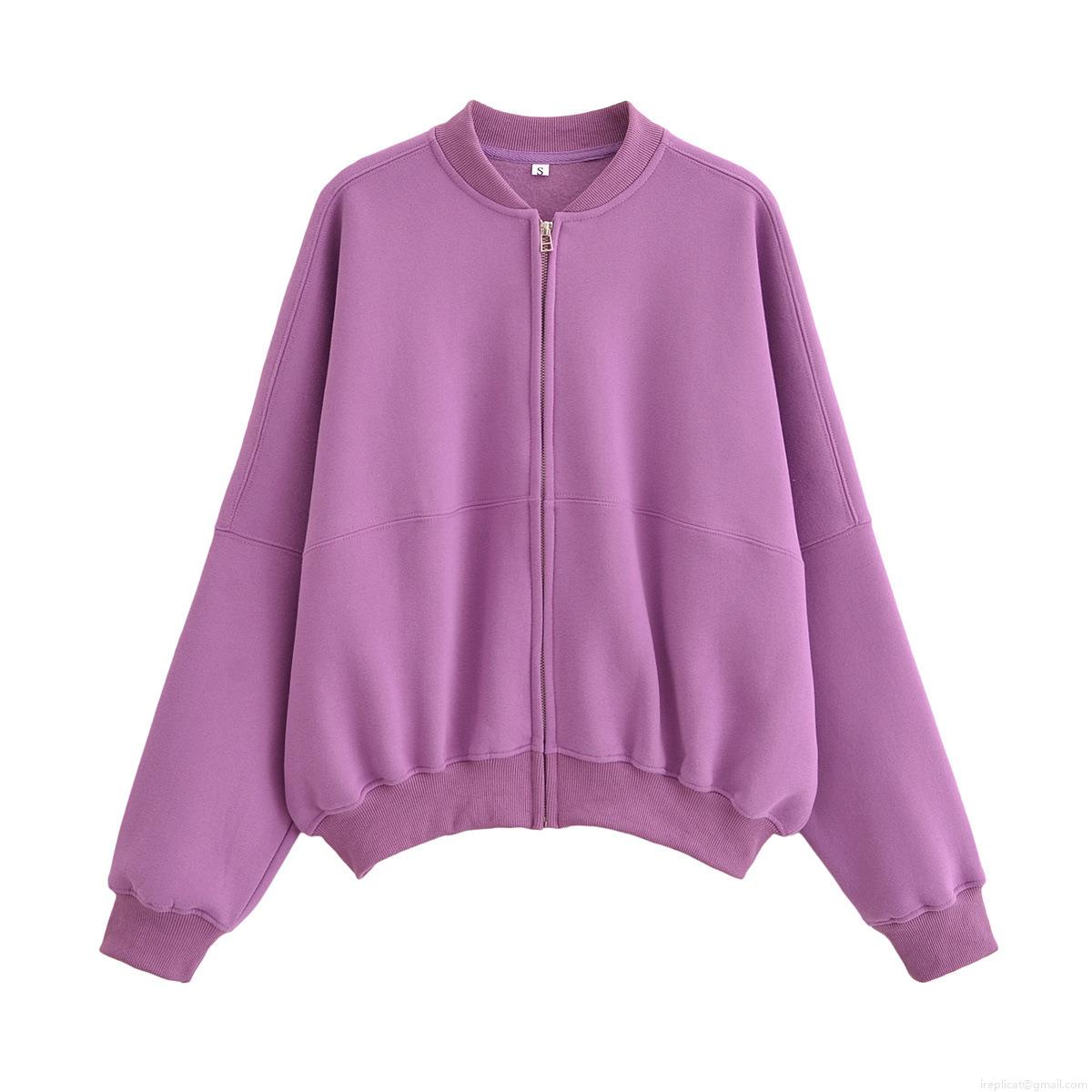 • Women's Zipper Bomber Jacket And Wide Leg Pants Two Piece Set Polyester Fleece Lined Casual Loose Oversized Streetwear Autumn Winter Solid Tracksuit