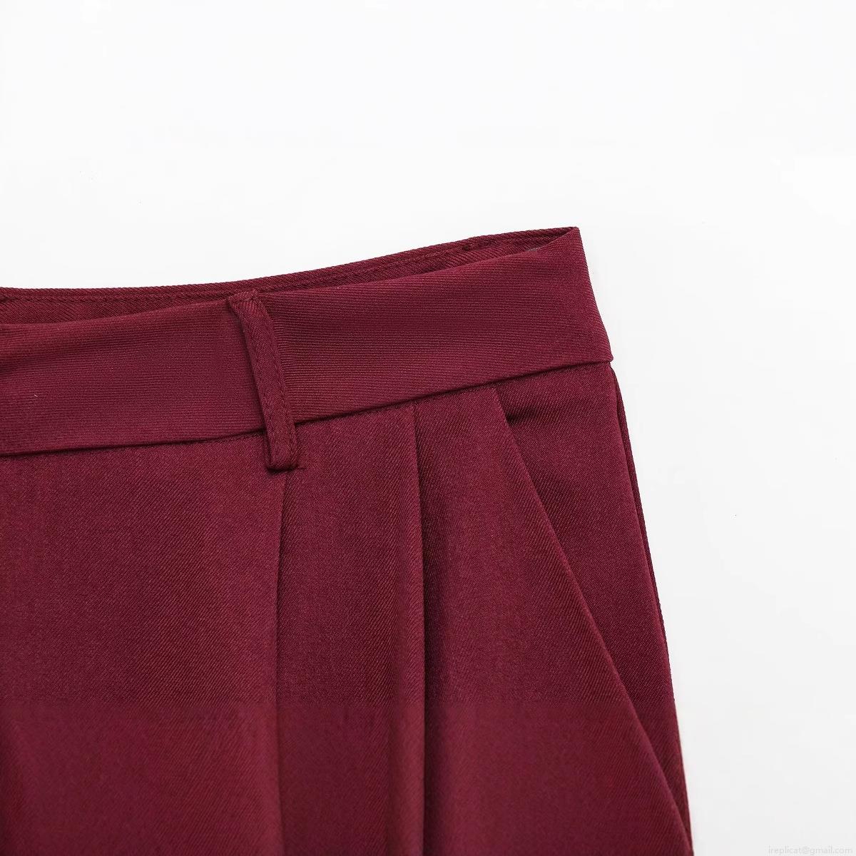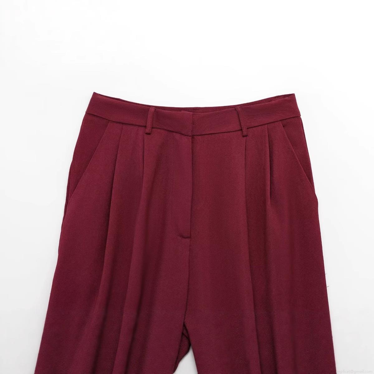 • Elegant Burgundy High Waist Wide Leg Suit Pants Women's Office Career Drapey Twill Straight Trousers Casual Minimalist Slim Fit Long Trousers