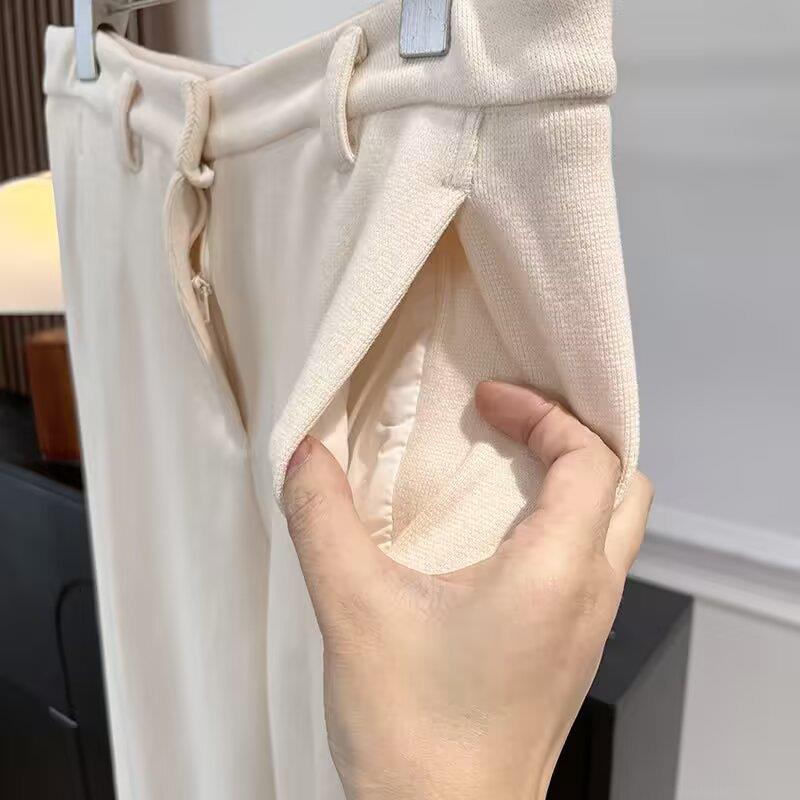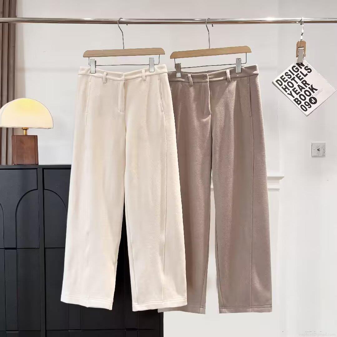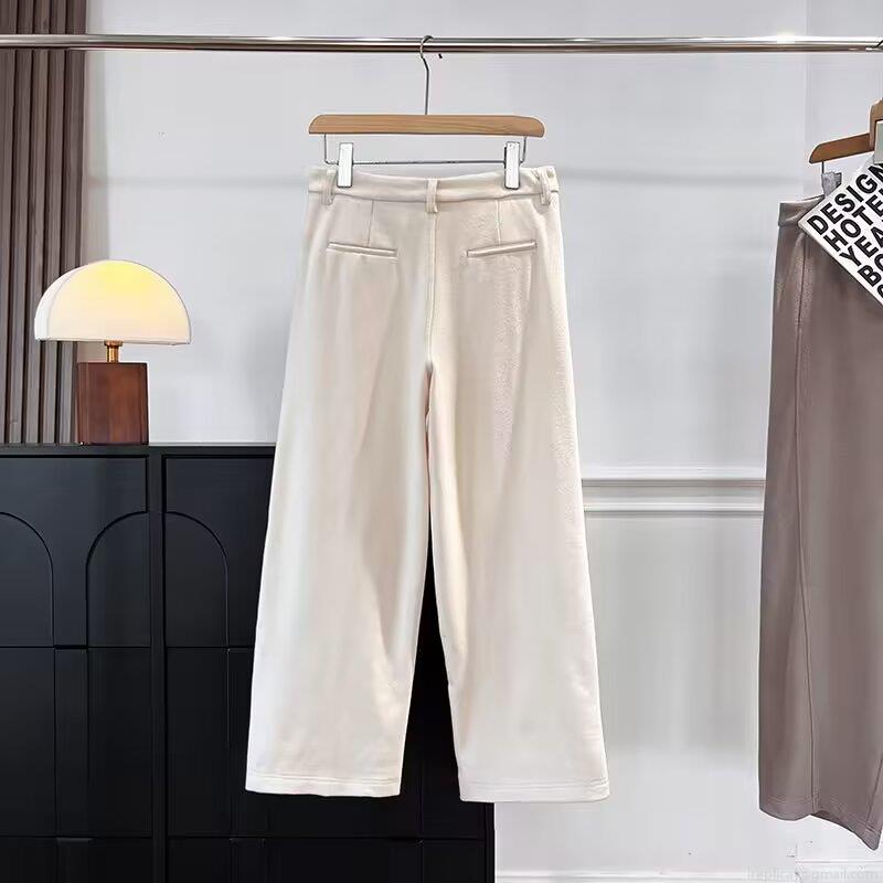 • Winter Women High Waist Wide Leg Trousers Solid Color Thick Warm Woolen-Like Casual Straight Pants Office Commuter Trousers Elegant Bottoms