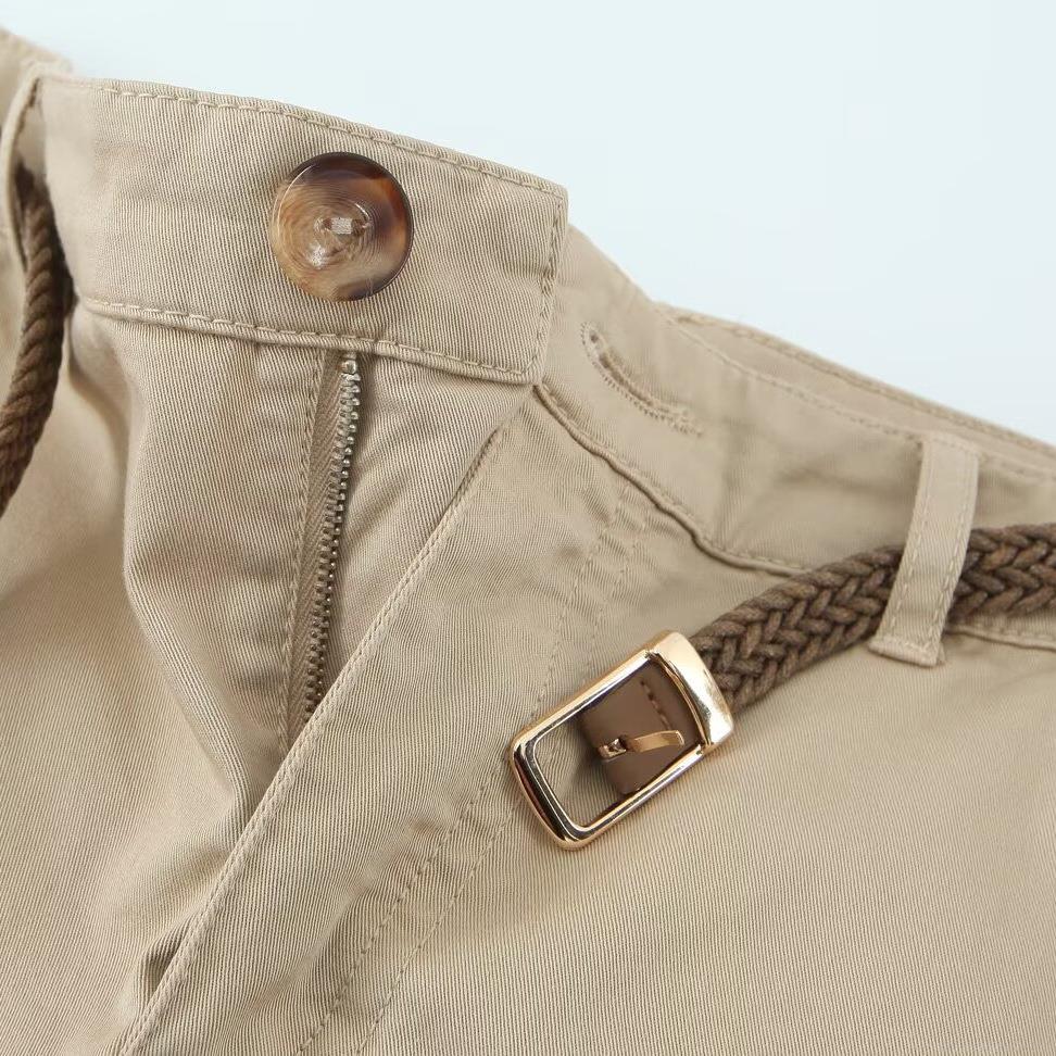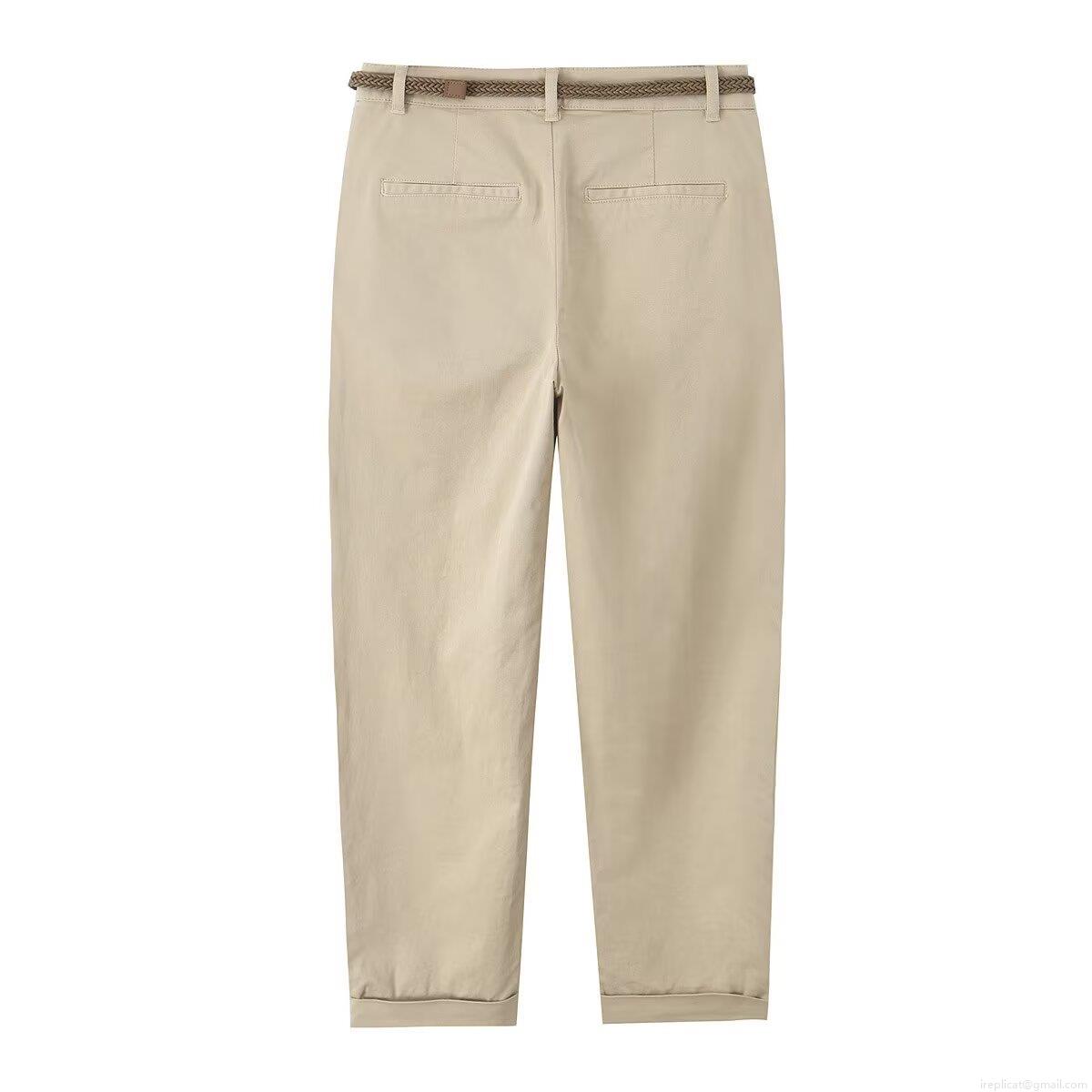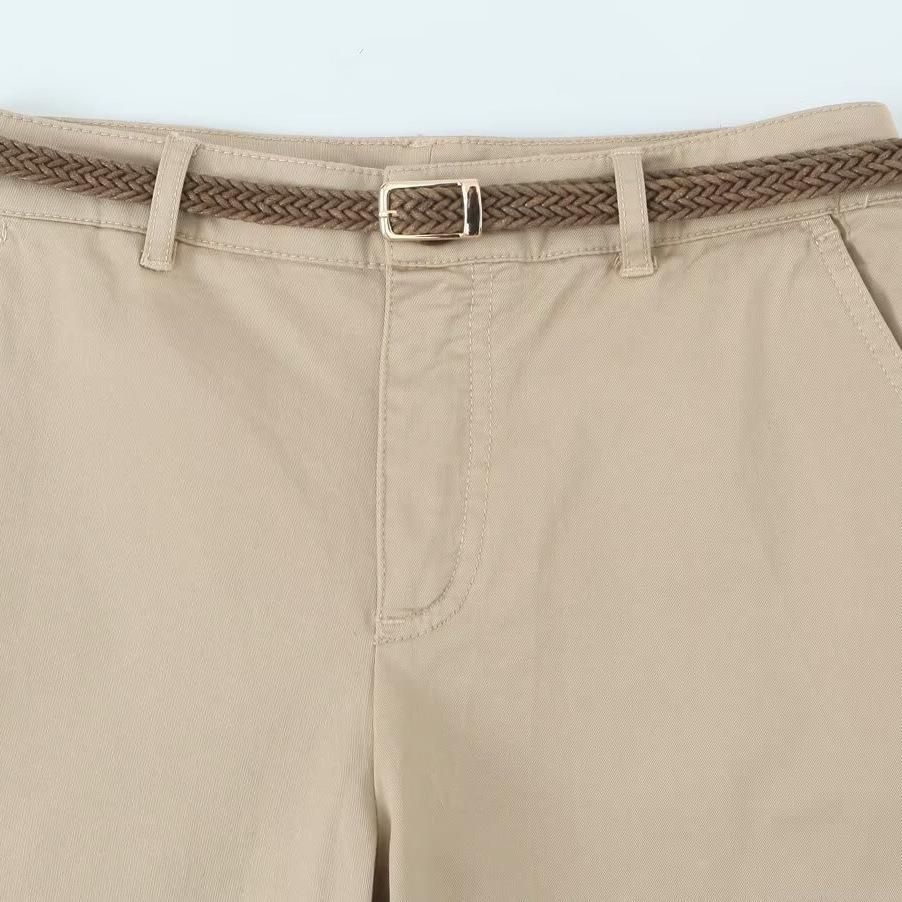 • Women Casual Tapered Pants With Woven Belt Cotton Blend Polyester Spandex Slim Fit Mid Waist Solid Color Khaki White Olive Green Lightweight Breathable Long Trousers For Daily Vacation Fashion