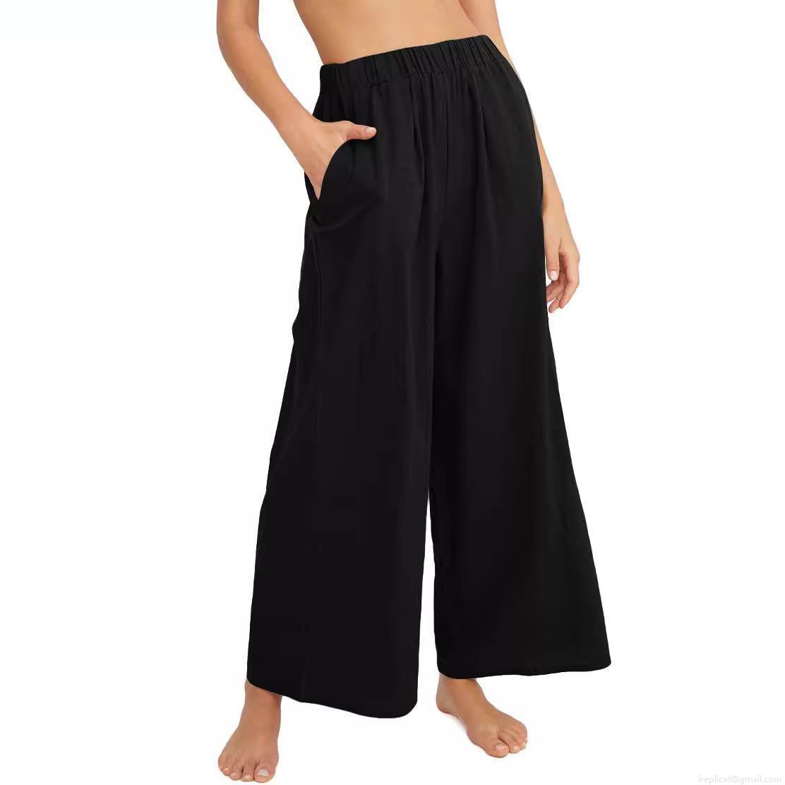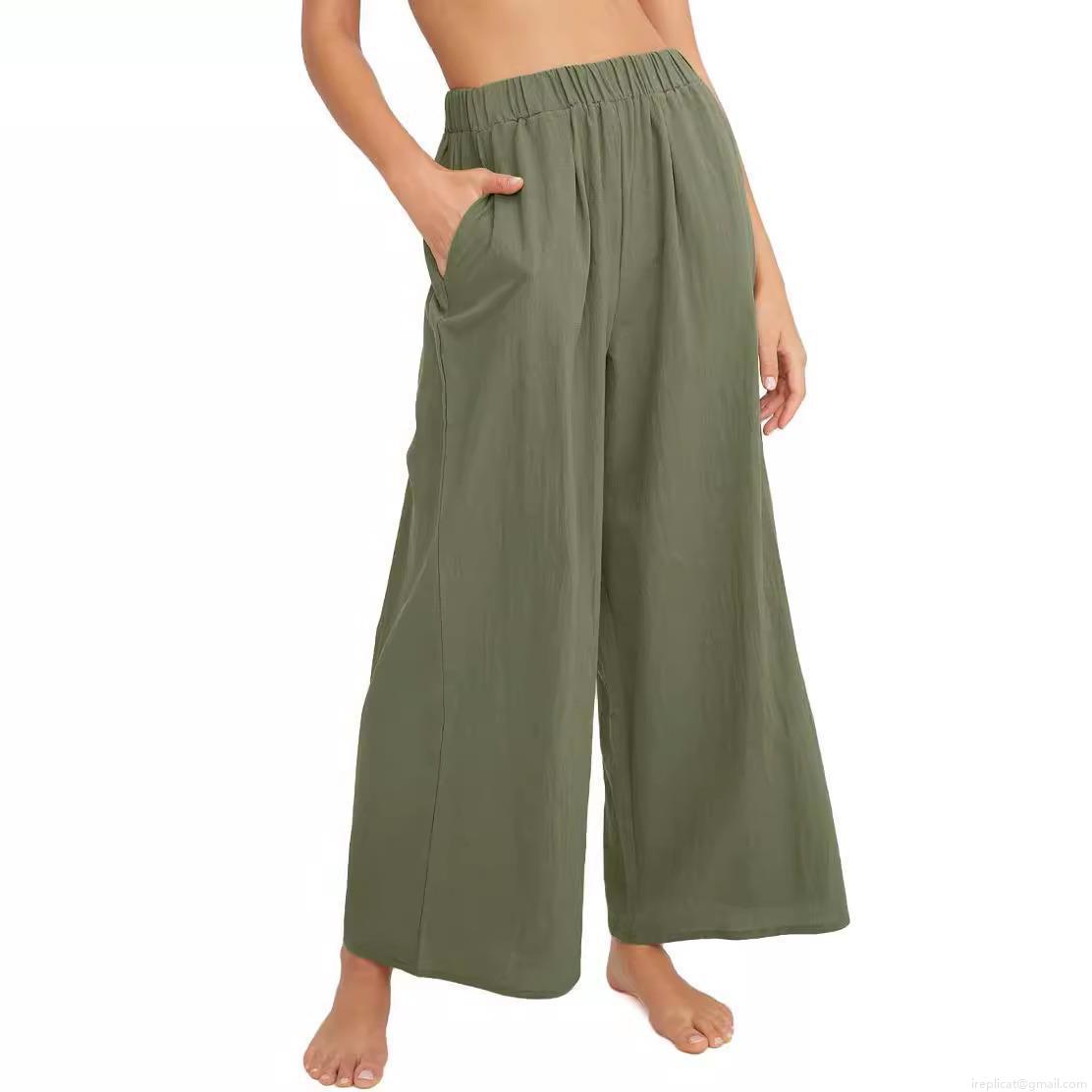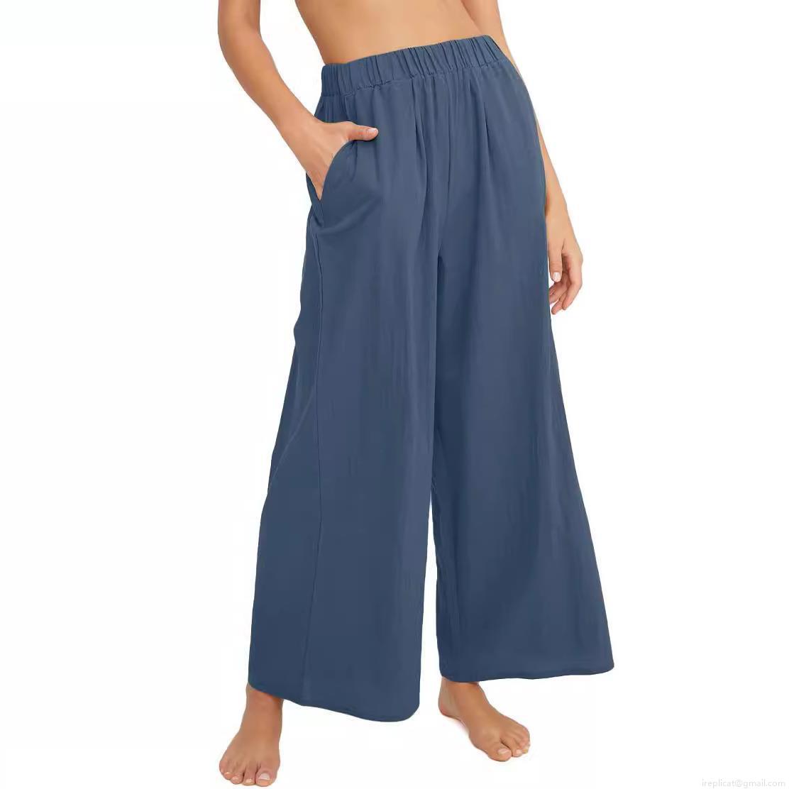 • Women Cotton Linen Wide Leg Pants High Waisted Loose Straight Casual Trousers Elastic Drawstring Solid Color Breathable Summer Beach Vacation Bottoms
