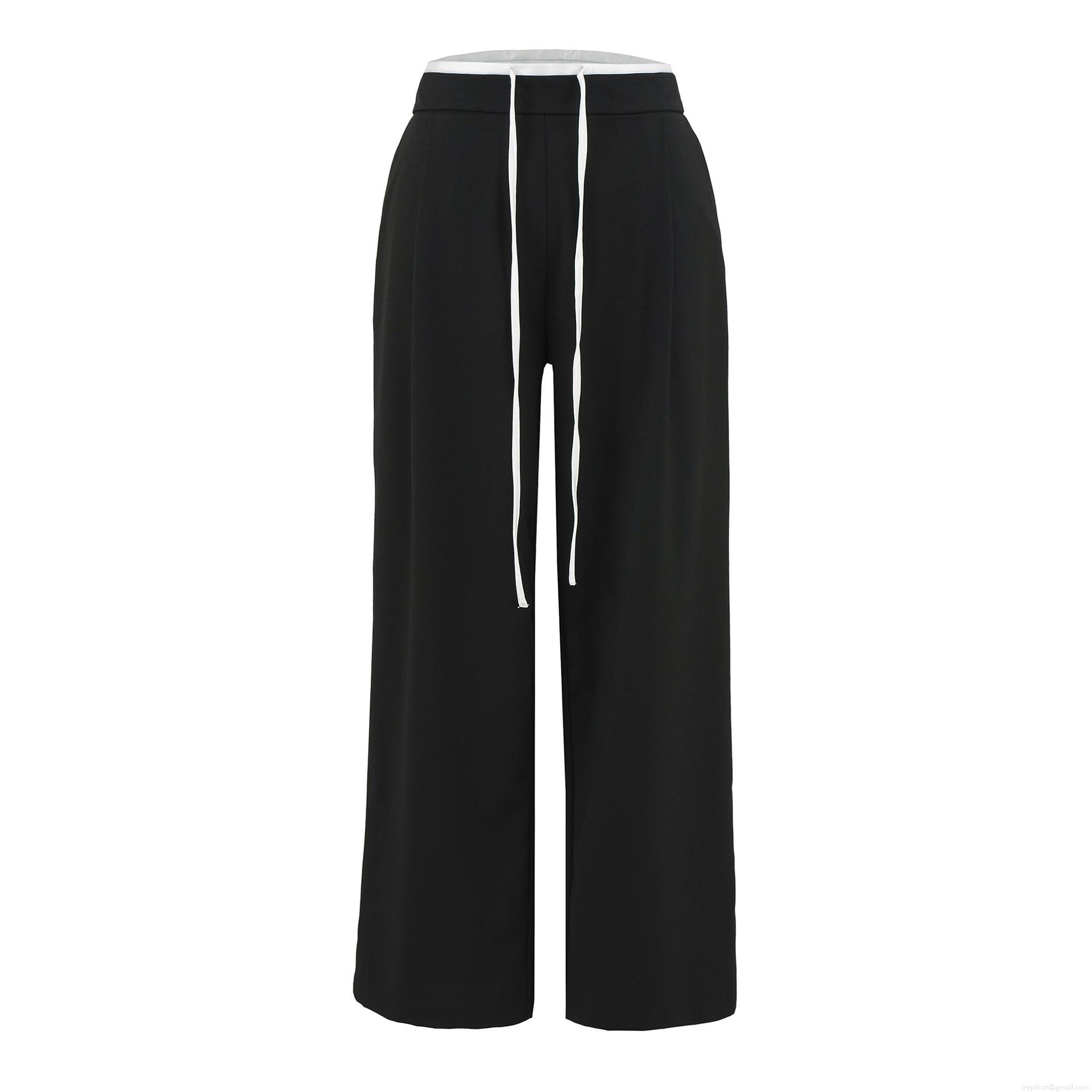 • Women Double Waistband Wide Leg Pants Casual Drawstring High Waist Cotton Polyester Blend Trousers Streetwear Baggy Autumn Bottoms For Ladies