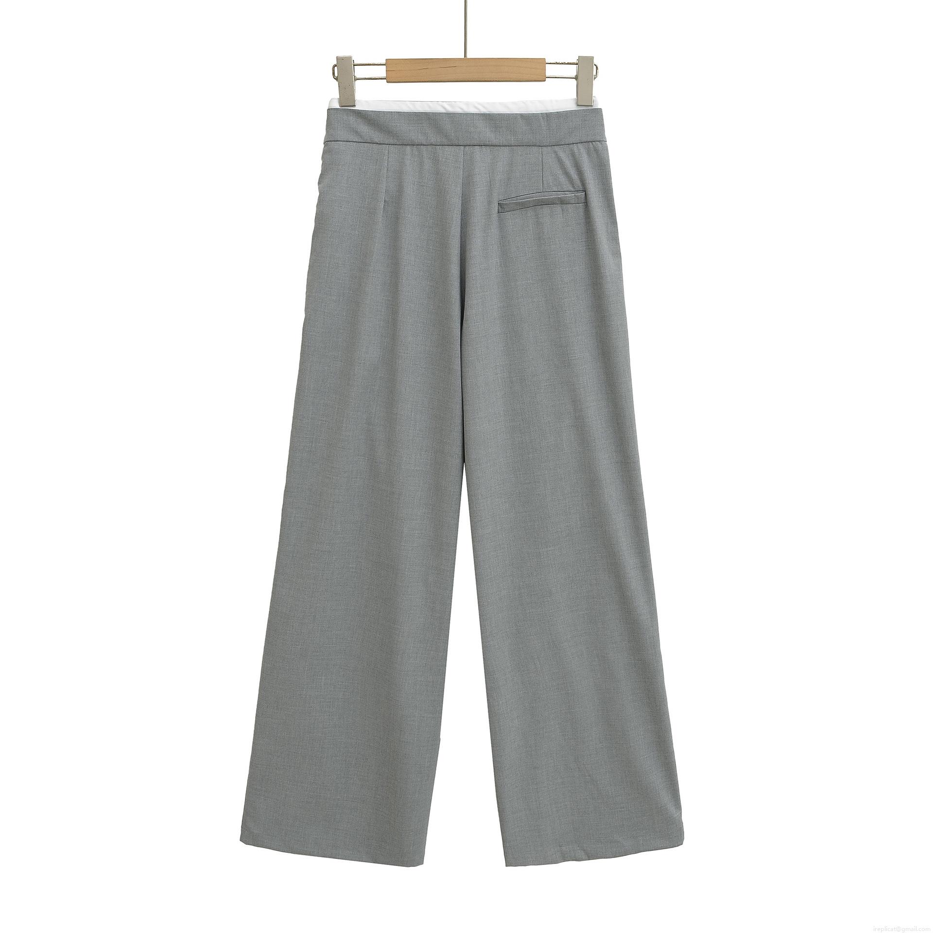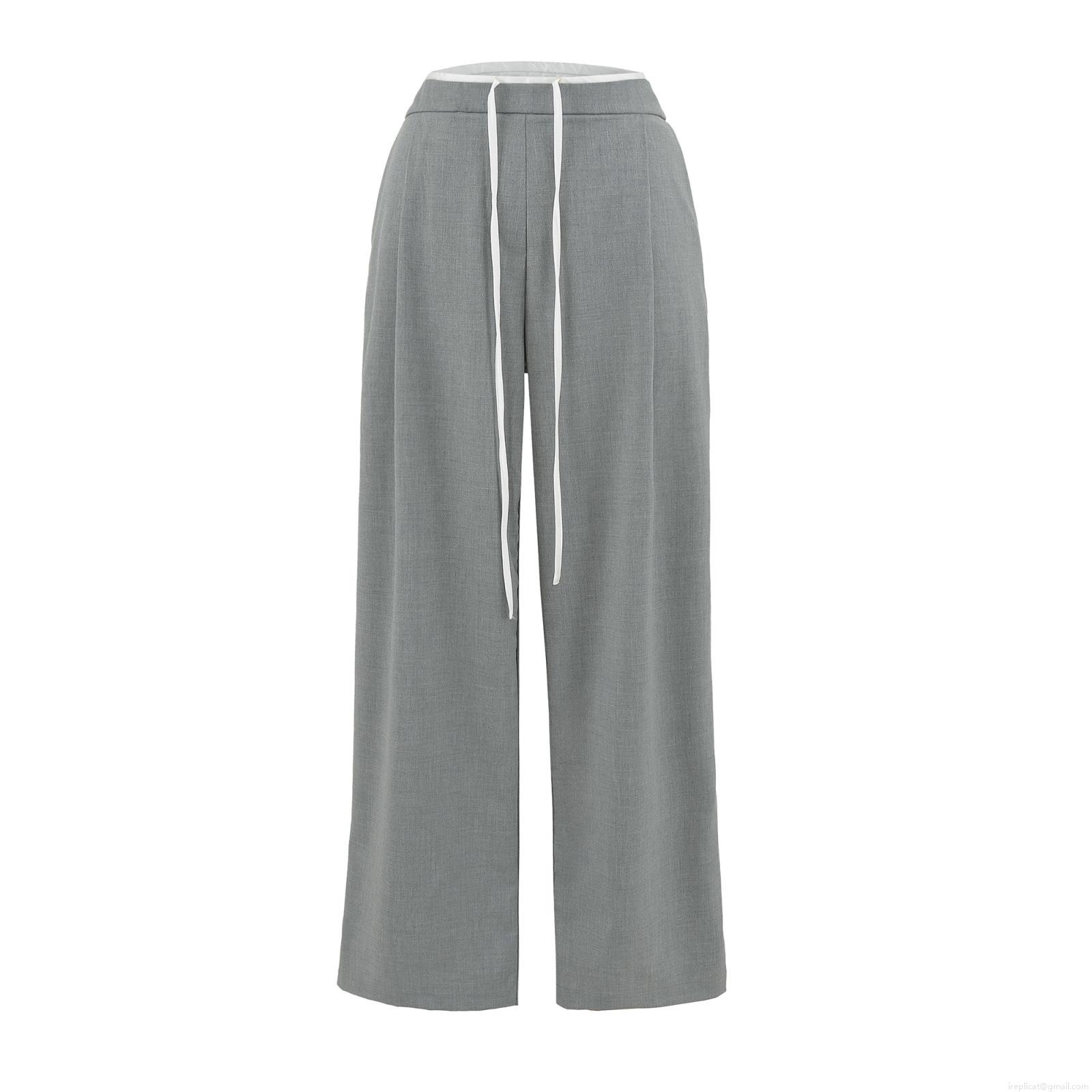 Women Double Waistband Wide Leg Pants Casual Drawstring High Waist Cotton Polyester Blend Trousers Streetwear Baggy Autumn Bottoms For Ladies