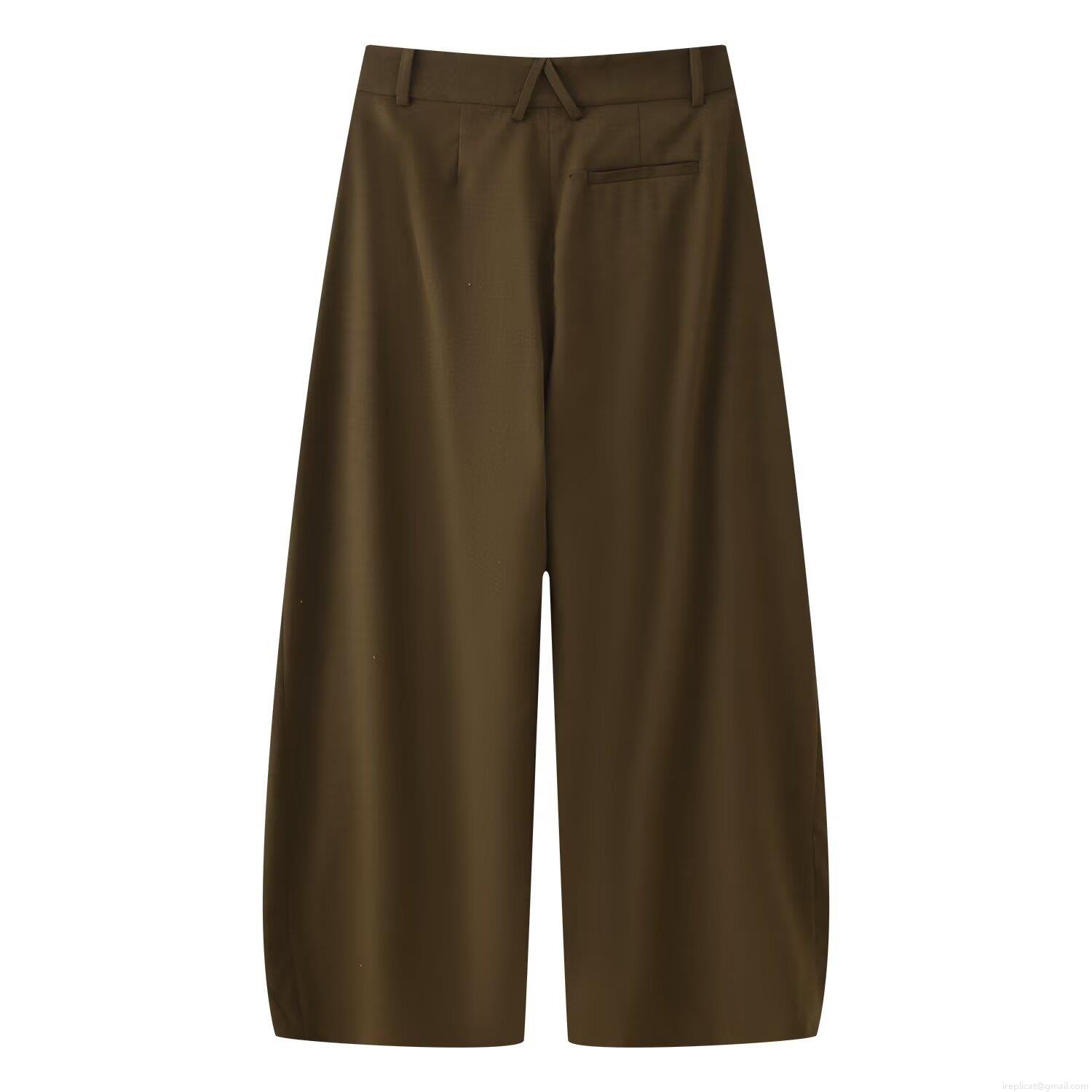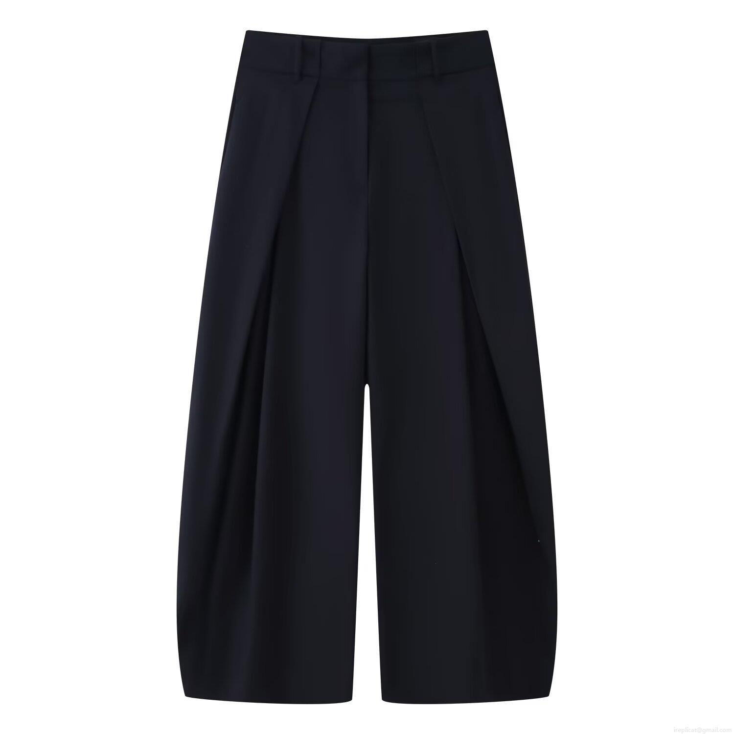 • Women Fashion High Waist Pleated Wide Leg Trousers Casual Loose Straight Leg Full Length Pants For Office Daily Streetwear Lady Elegant Solid Color Polyester Bottoms