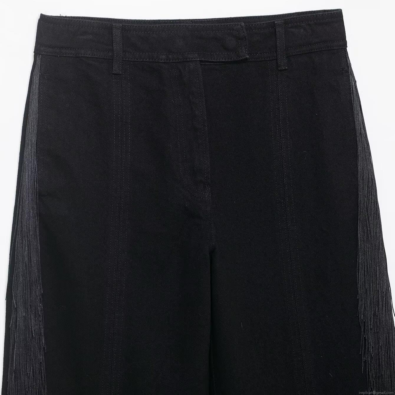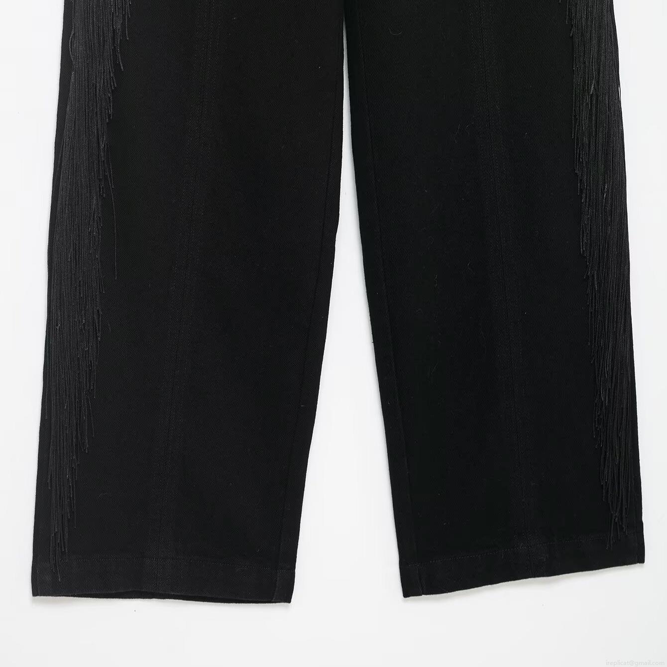 • Women Fashion High Waist Wide Leg Pants Black Trousers With Silver Chain Tassel Fringe Loose Casual Streetwear Party Rock Style Winter Polyester Long Pants For Women