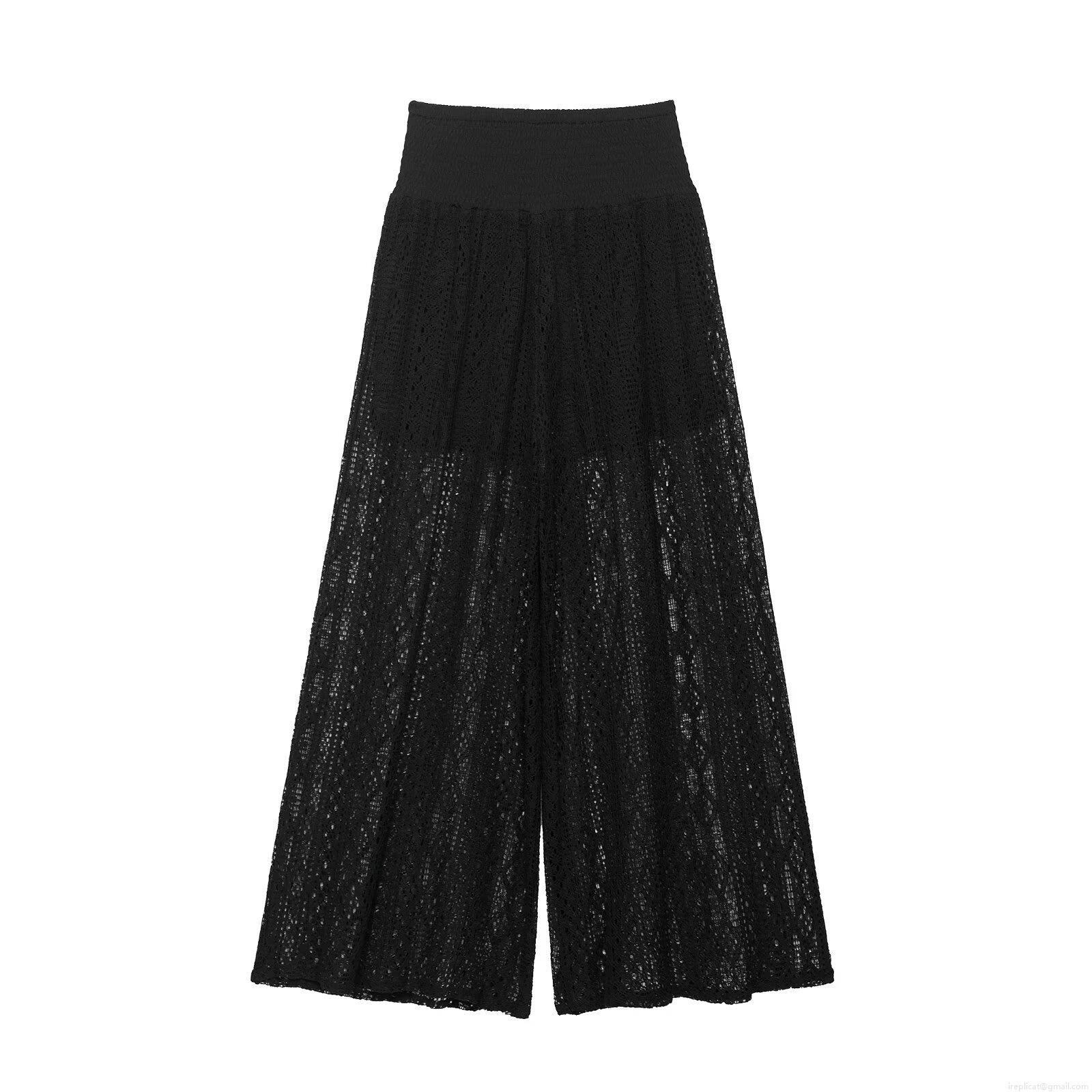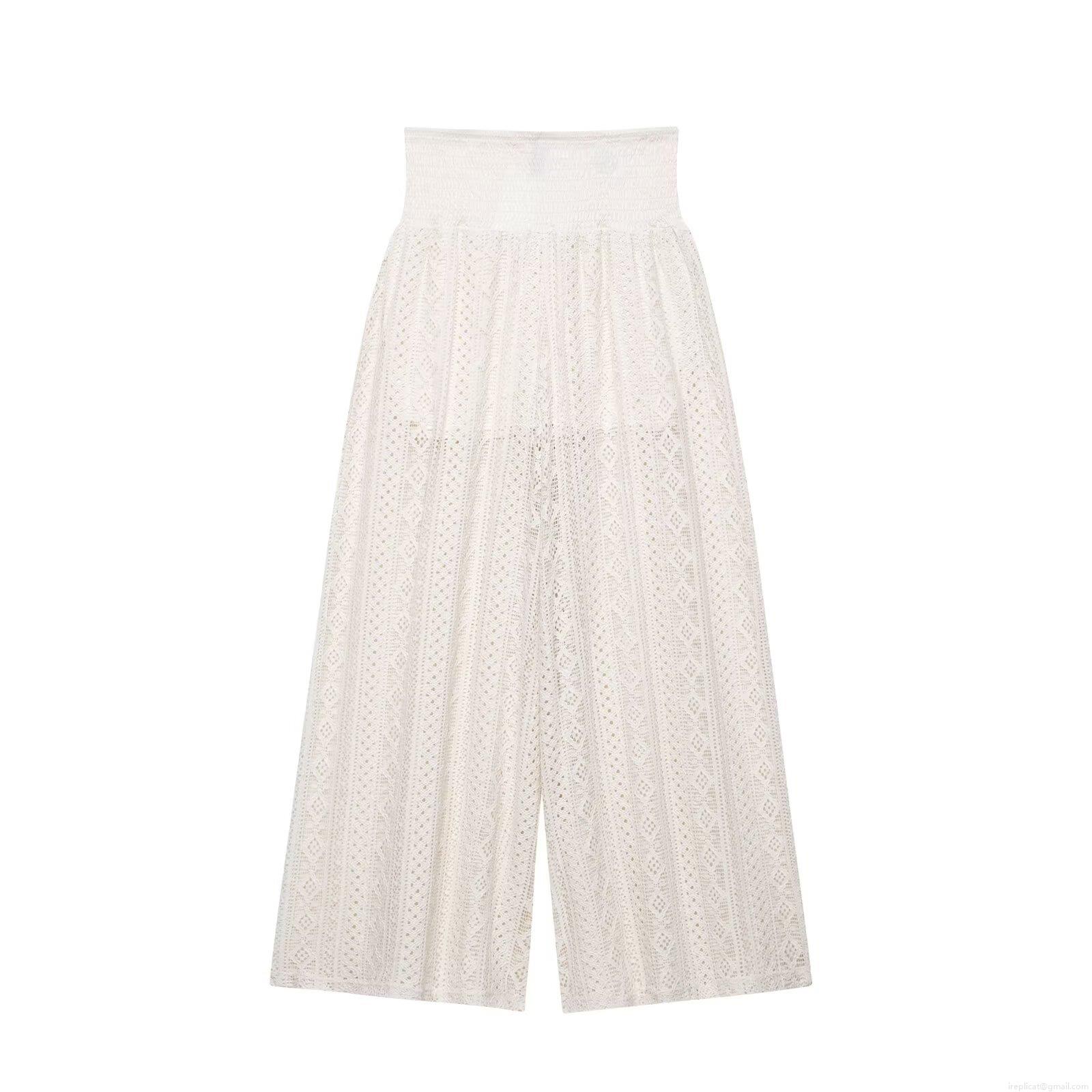 • Women Fashion Lace Wide Leg Pants High Waist Loose Casual Straight Trousers Crochet Hollow Out Polyester Long Pants For Women Elegant Streetwear