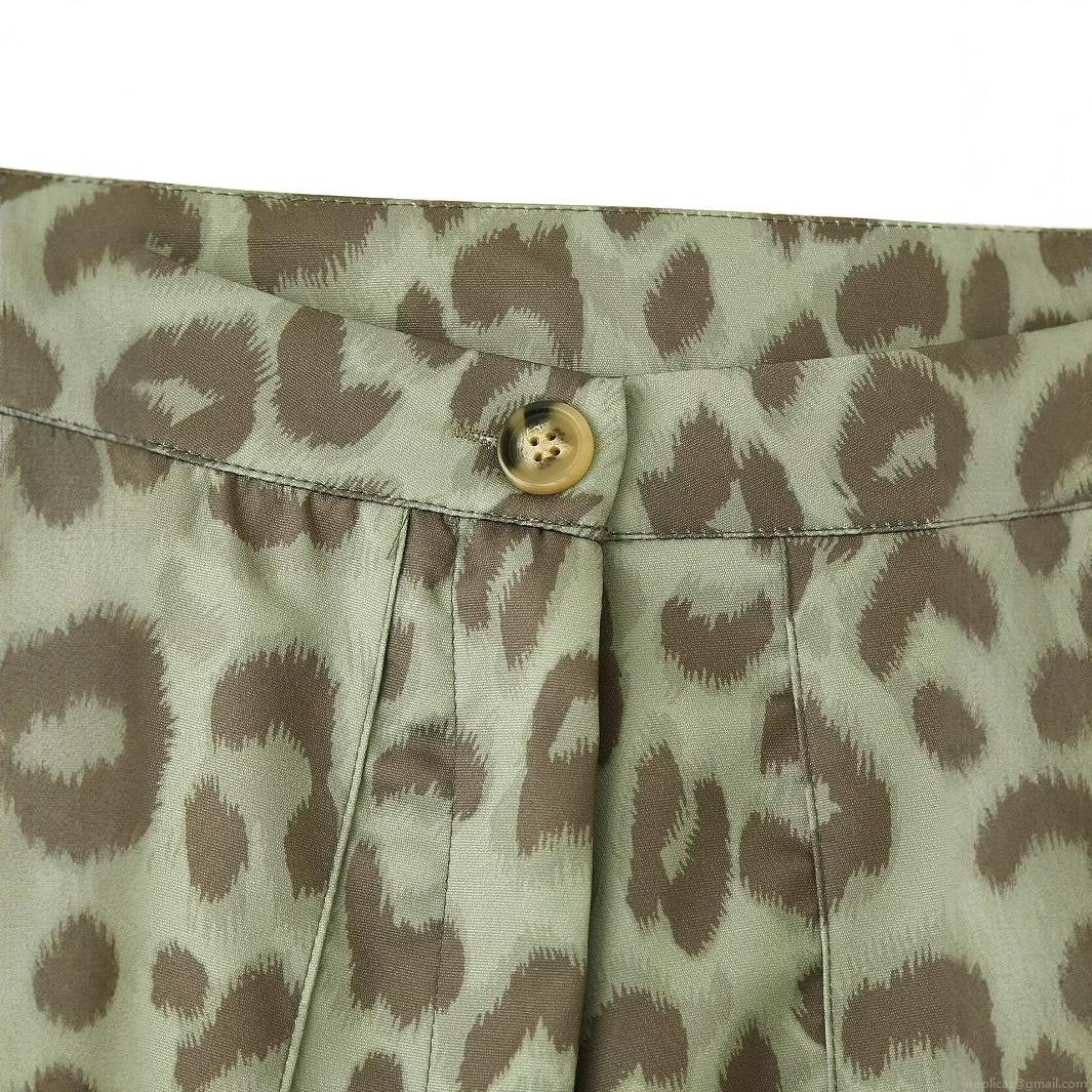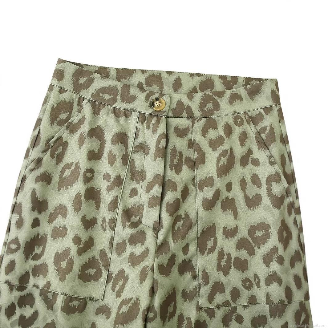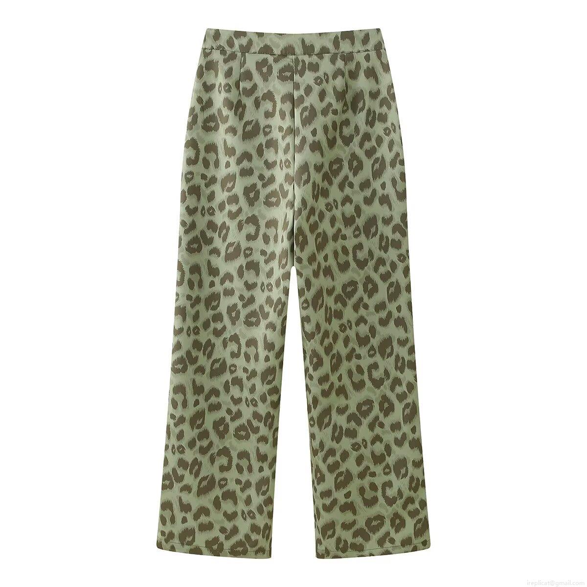 Women Fashion Leopard Print High Waisted Wide Leg Pants Casual Straight Long Trousers Polyester Olive Green Animal Print Bottoms