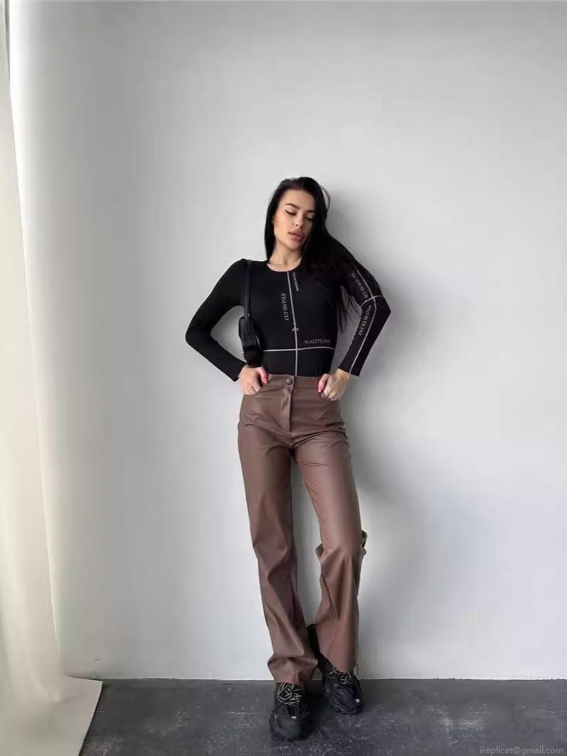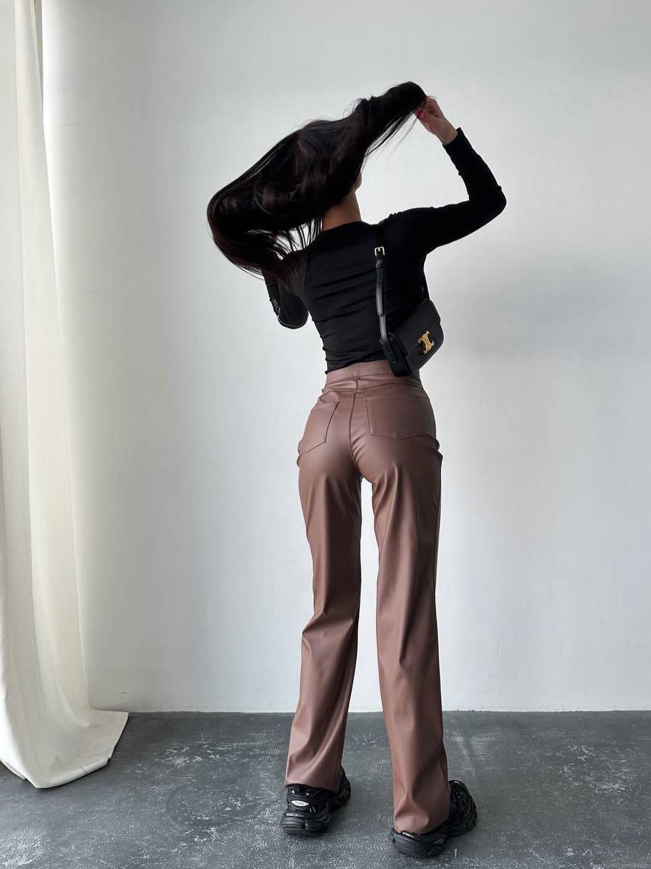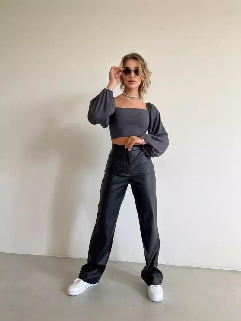 • Women High Waist PU Leather Pants Wide Leg Straight Trousers Casual Autumn Winter Solid Color Loose Streetwear Synthetic Leather Long Pants