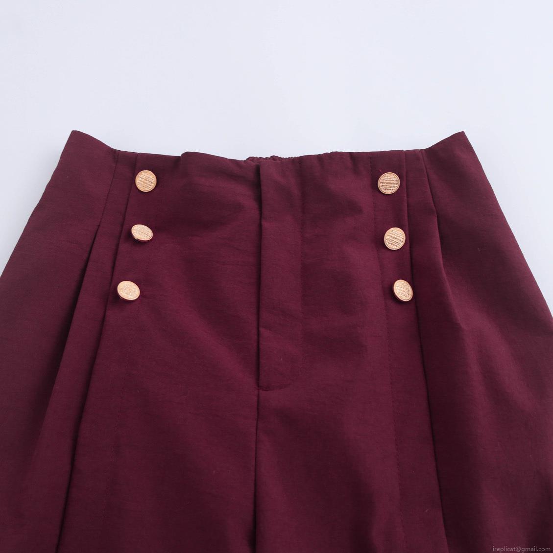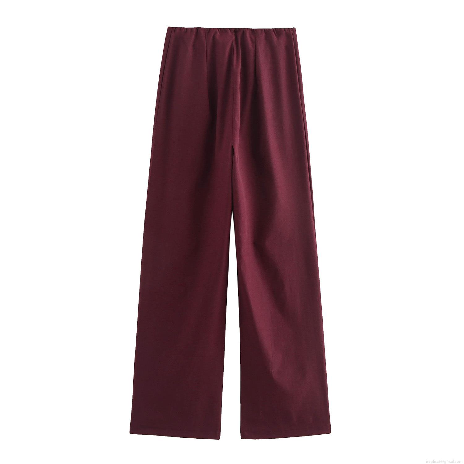 • Women High Waist Straight Leg Trousers Elegant Burgundy Red Commuting Pants With Gold Button Decoration Autumn Winter Pleated Trousers