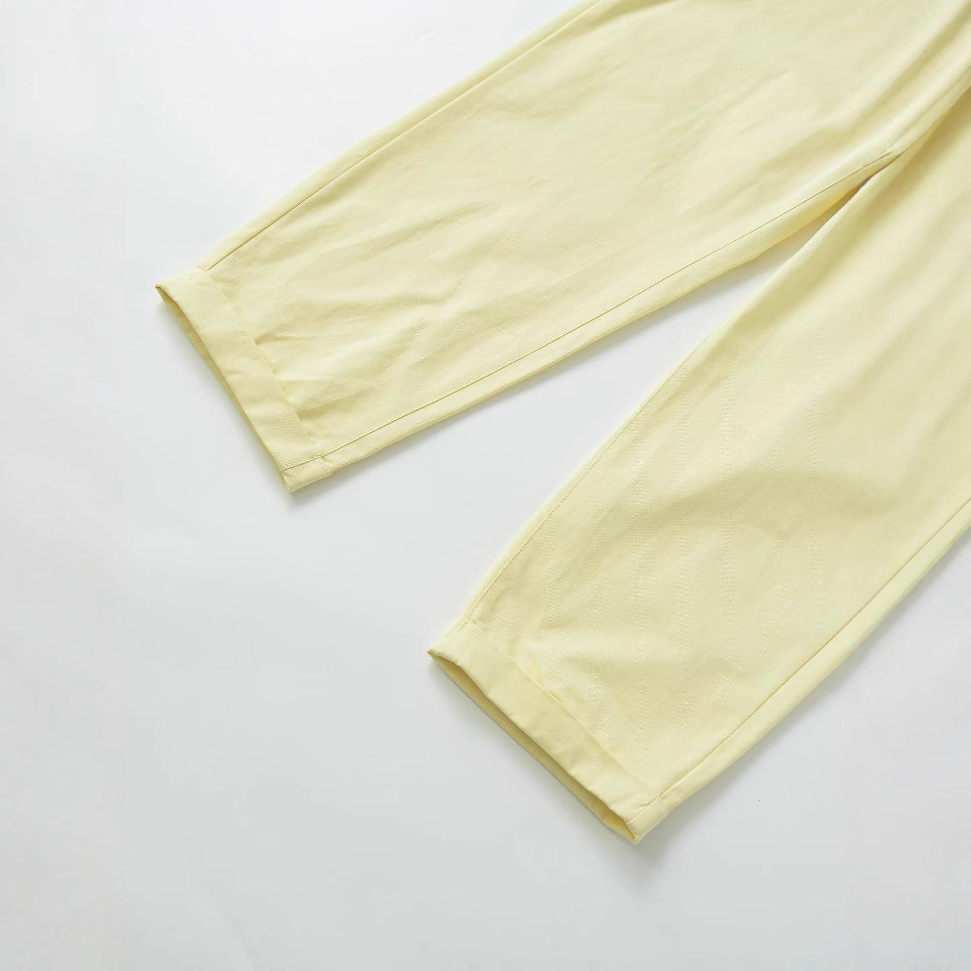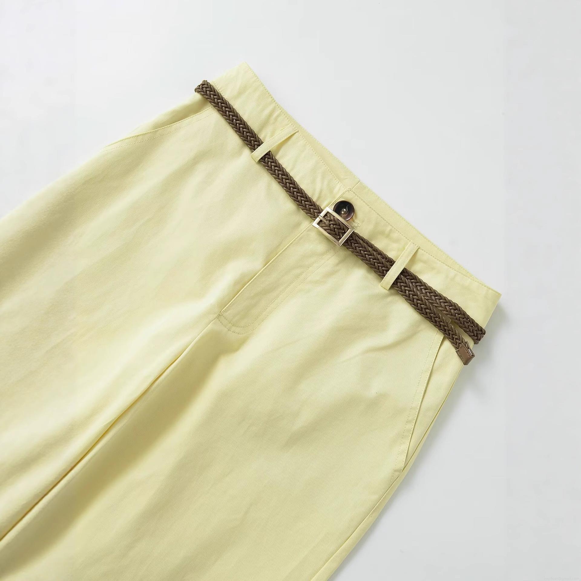 Solid Color, High-waisted, Conical Design, Rolled-up Trouser Legs, Woven Belt