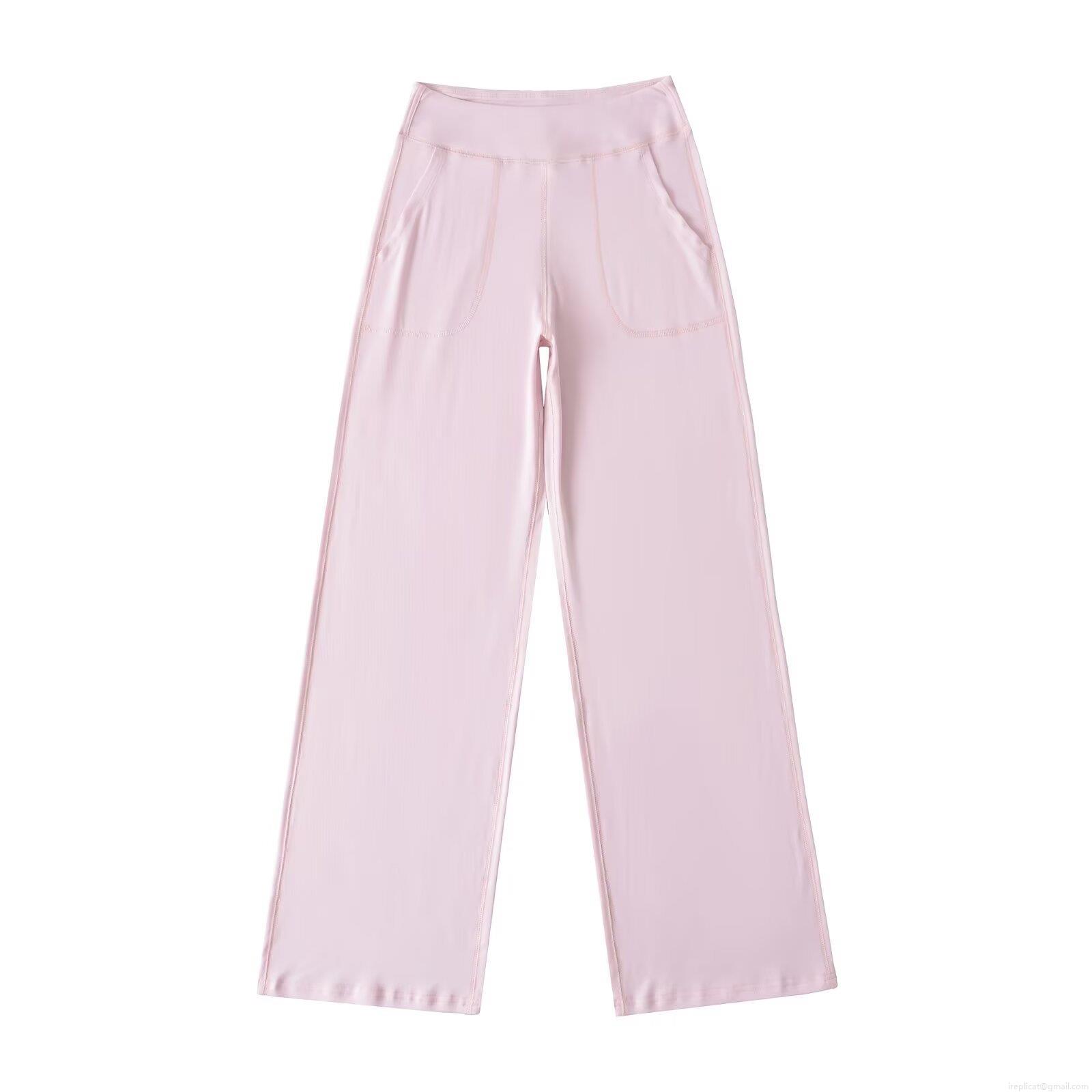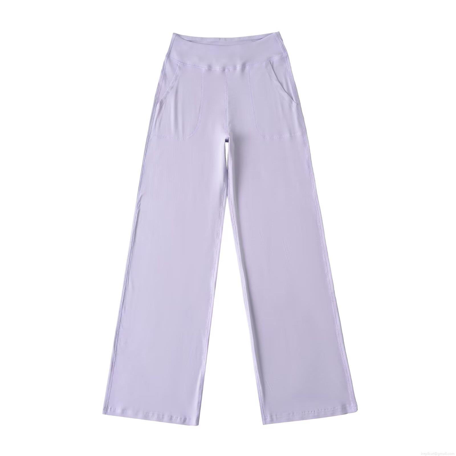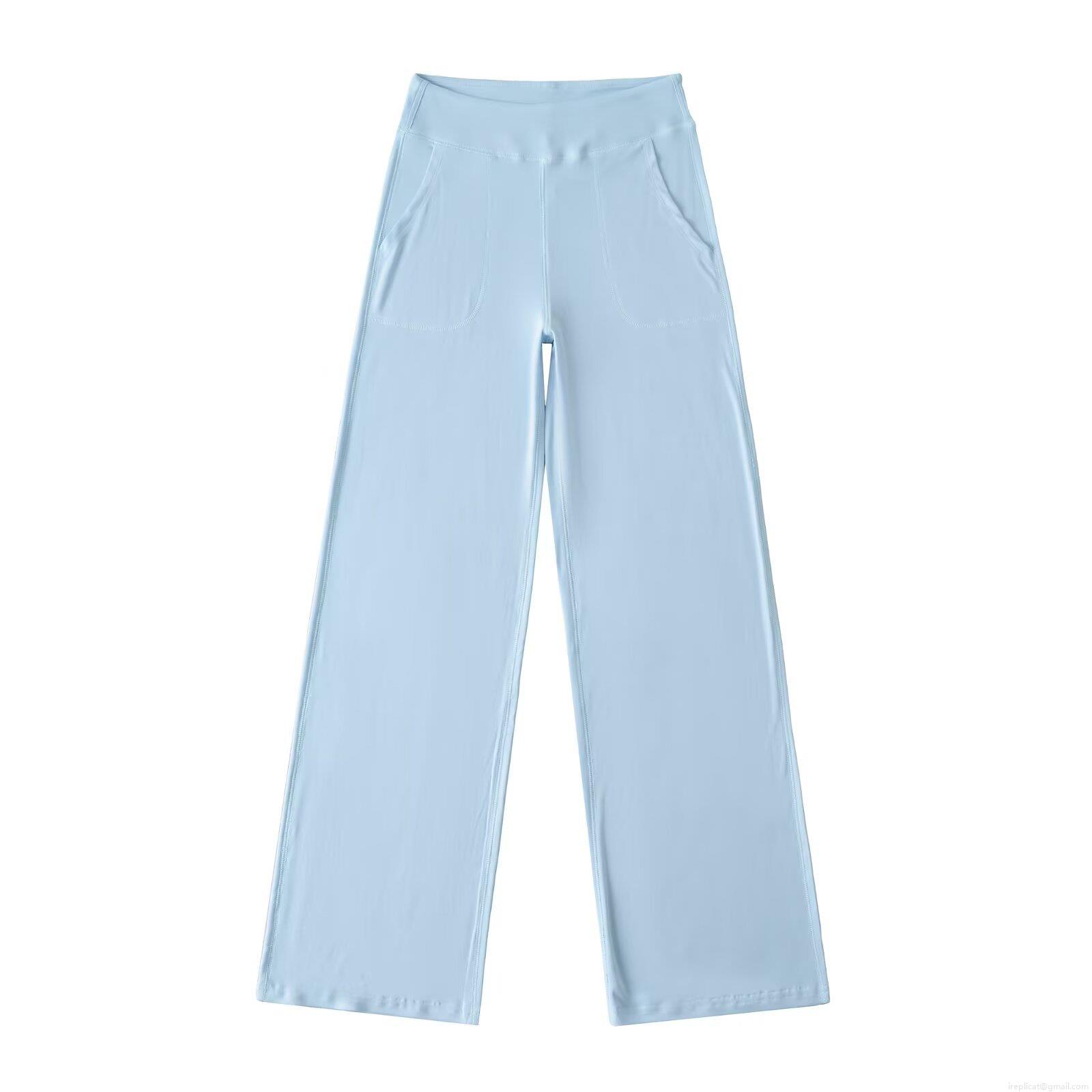 Women High Waist Wide Leg Casual Pants Loose Solid Color Drape Straight Trousers with Pockets for Autumn Streetwear Fashion