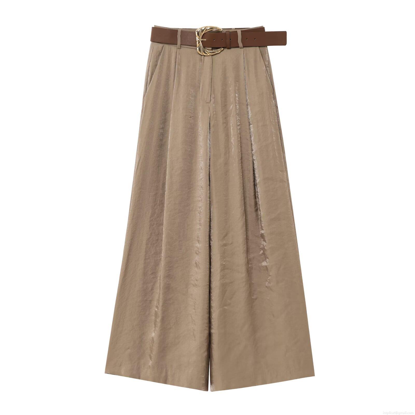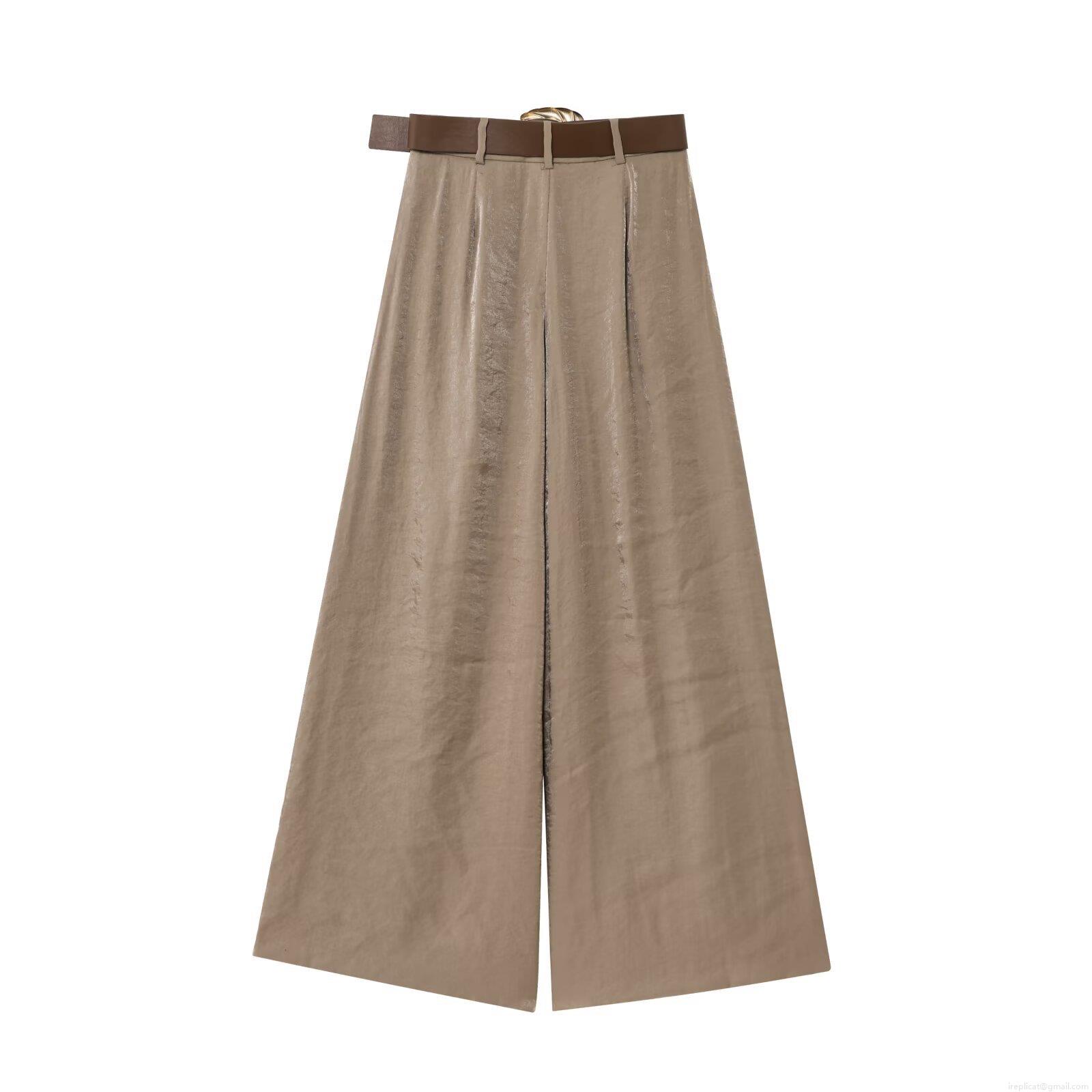 • Women High Waist Wide Leg Pants With Belt Satin Texture Solid Color Loose Trousers Elegant Streetwear Summer Casual Bottoms For Ladies