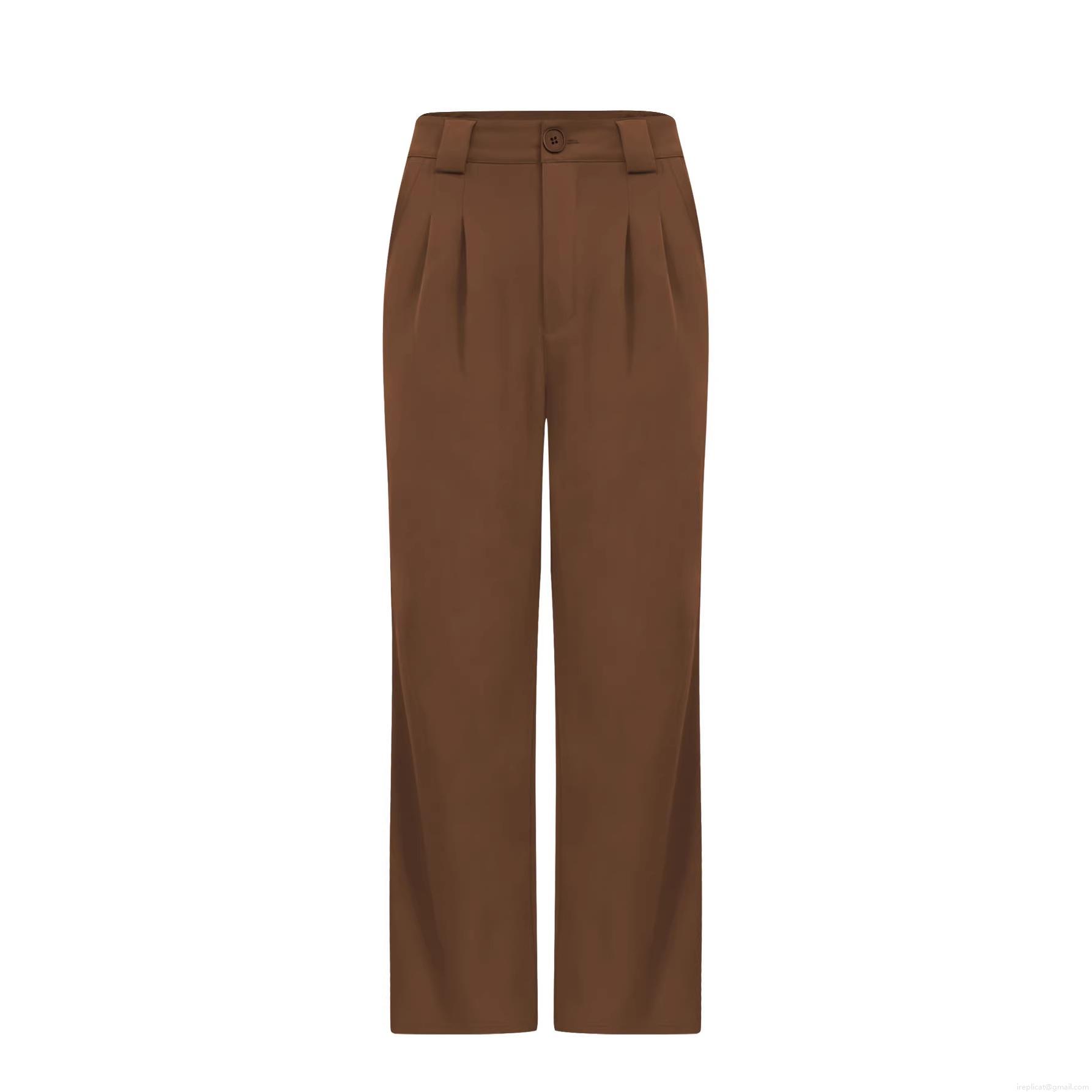• Women High Waist Wide Leg Suit Trousers Elegant Button Solid Color Polyester Spandex Straight Loose Long Pants for Office Daily Commute Workwear