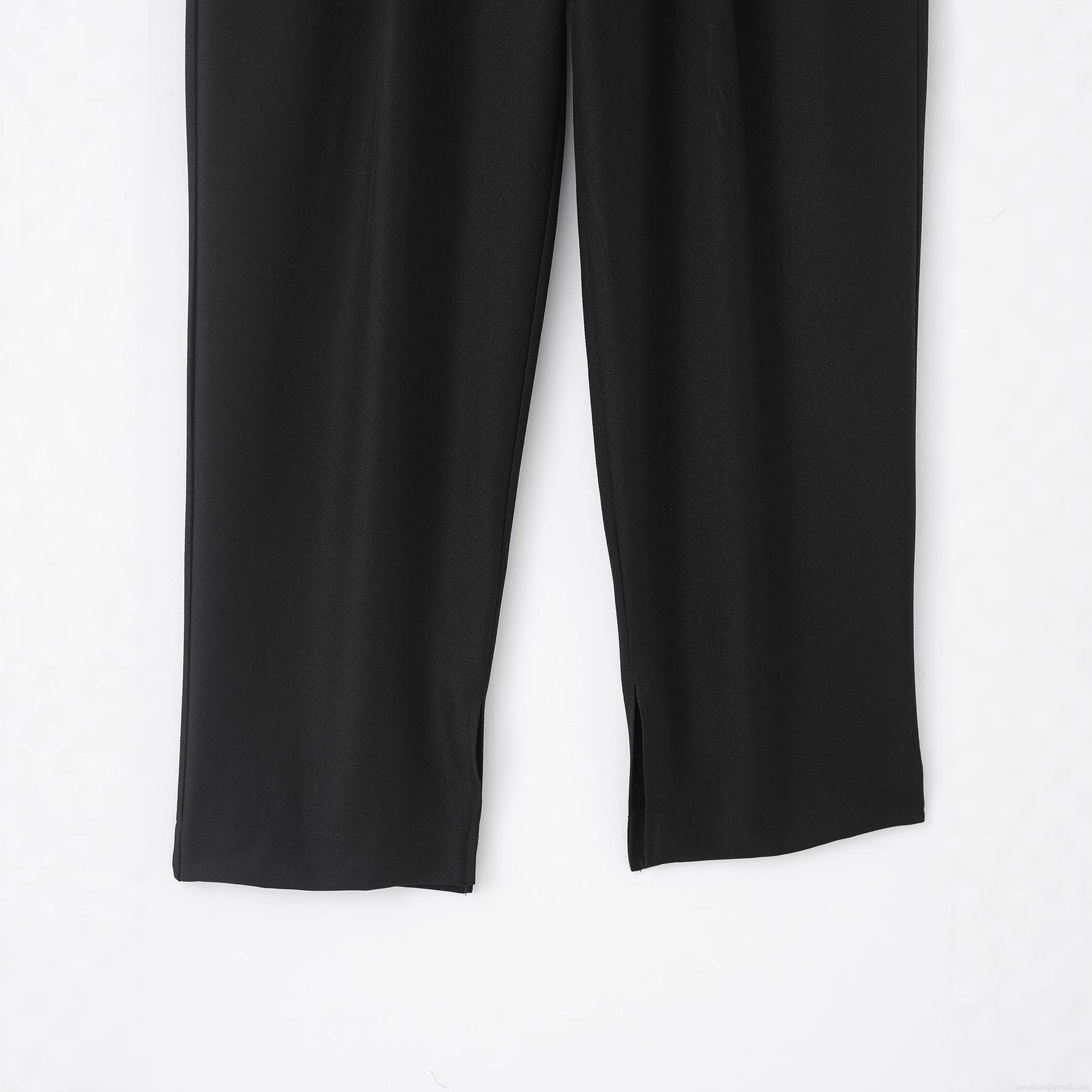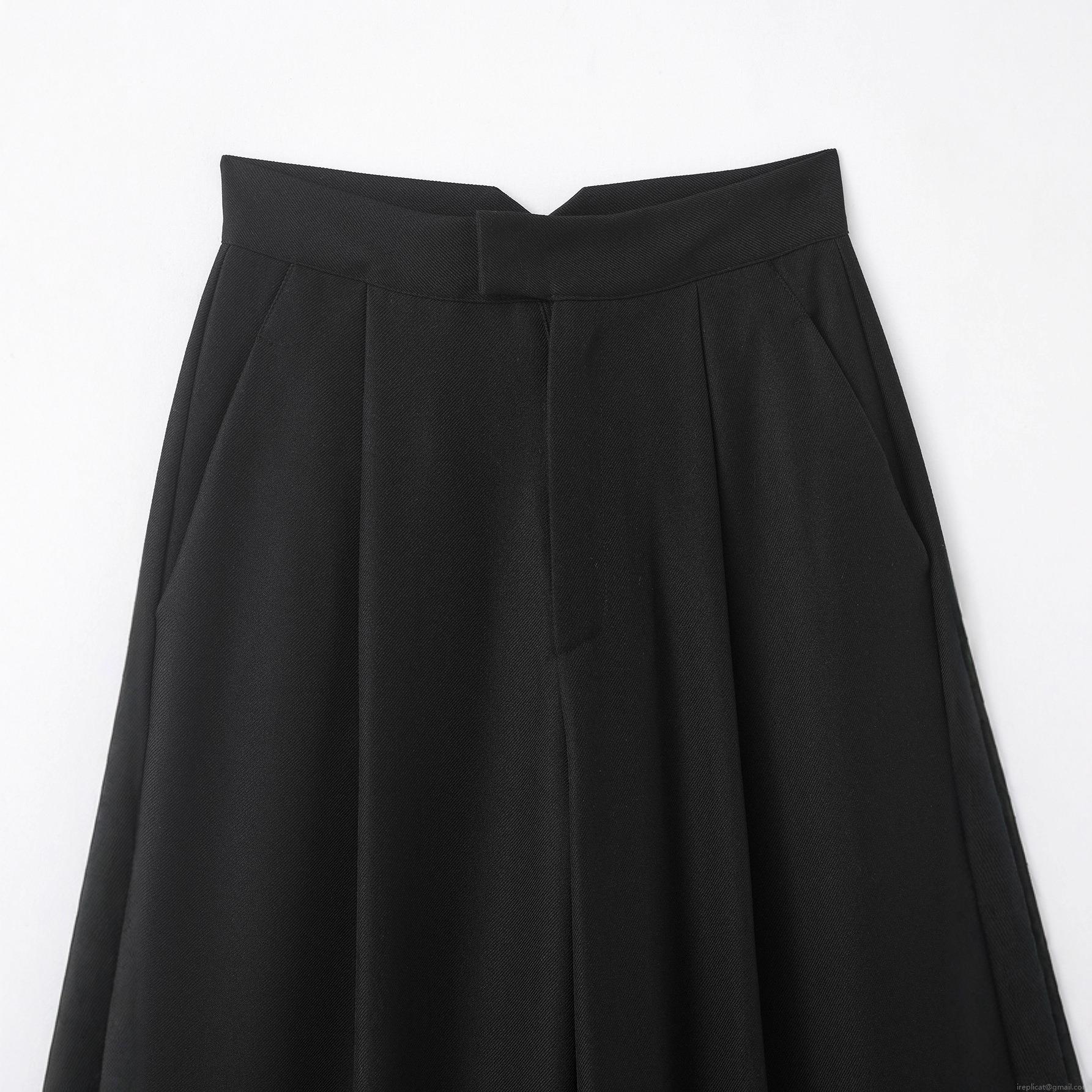 Solid Color, Pleated Design, Twill Texture, Side Slits, High-waisted Cut