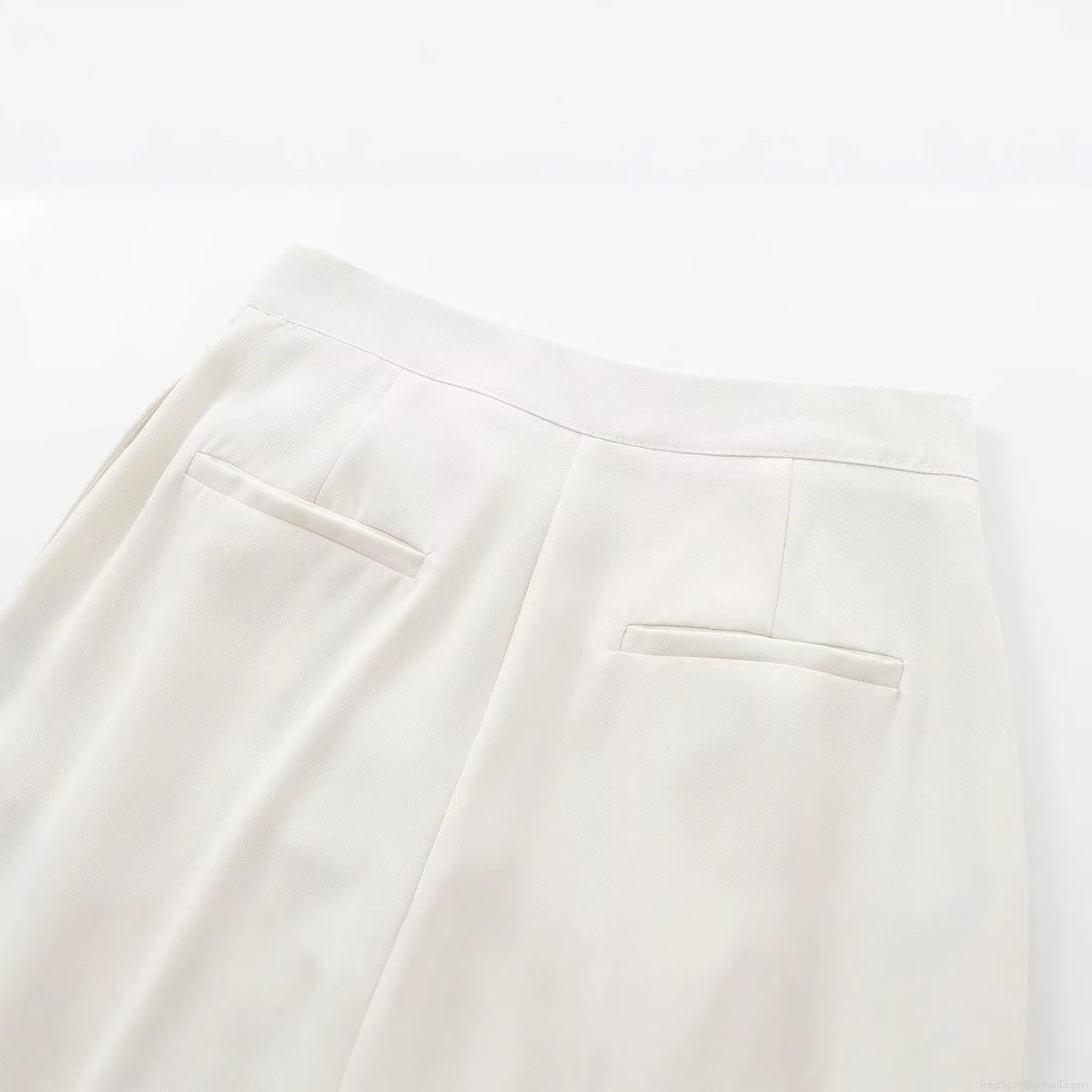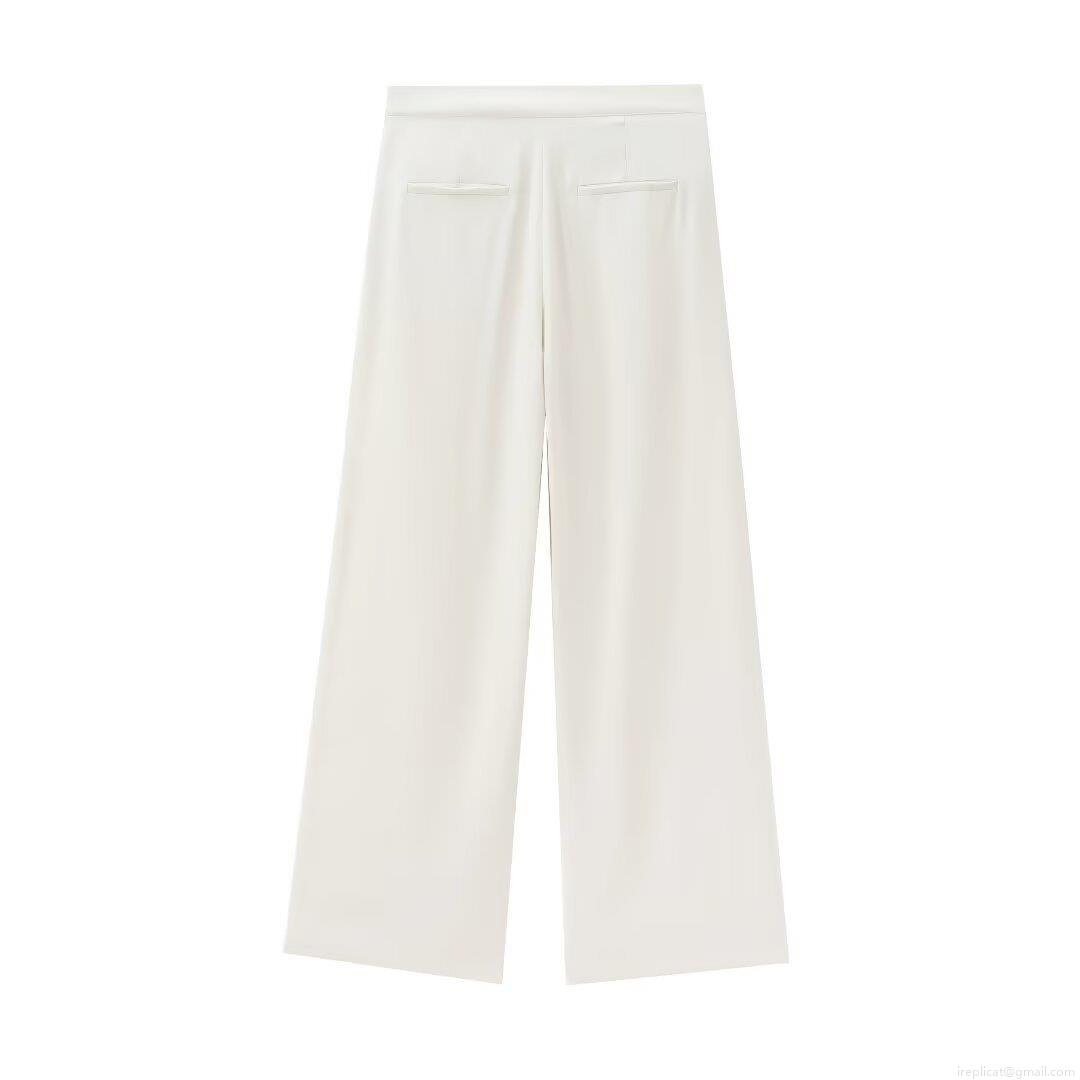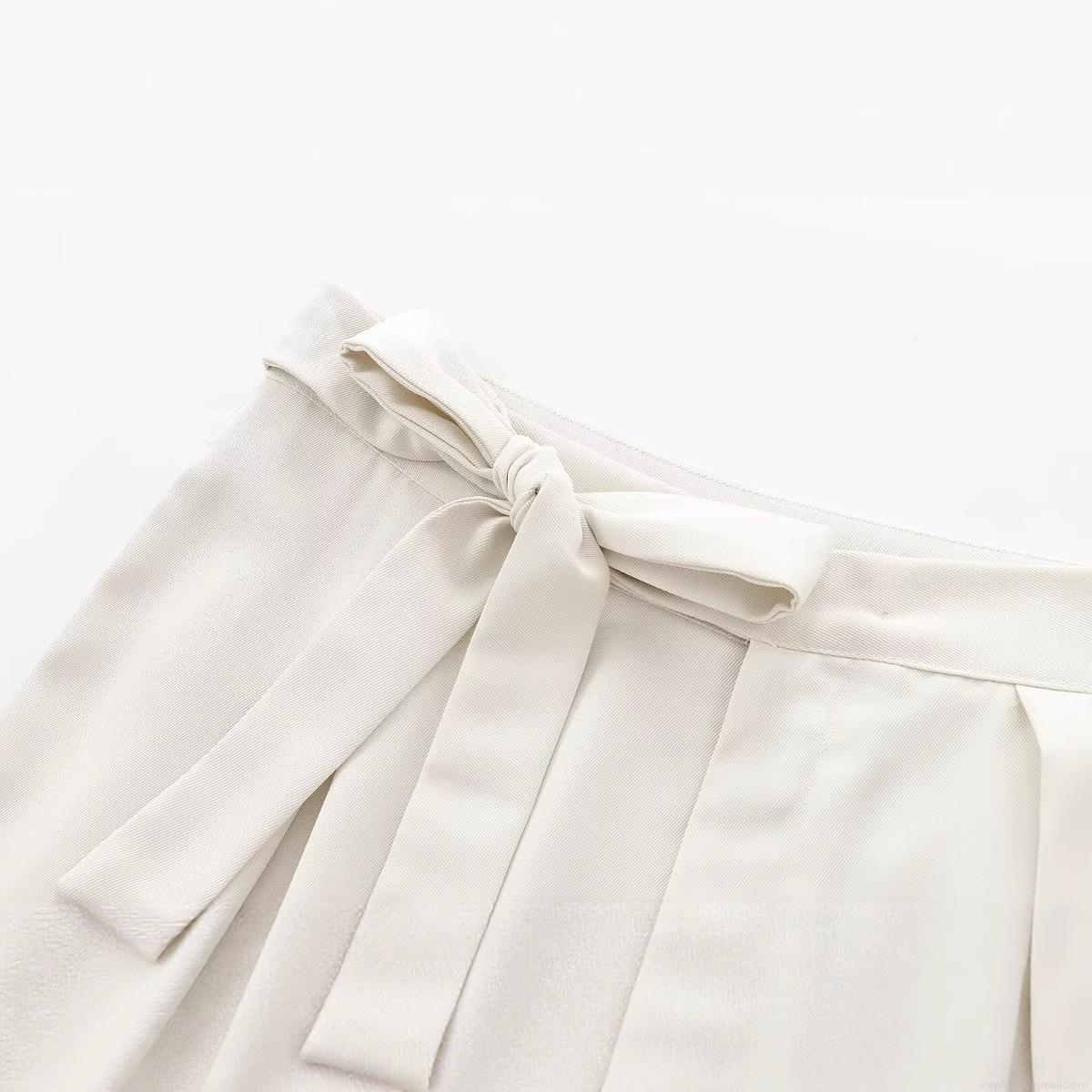 • Women High Waist Wide Leg Trousers Elegant Polyester Twill Fabric Tied Bow Belt Solid Creamy White Casual Office Workwear Fashion Loose Full Length Pants