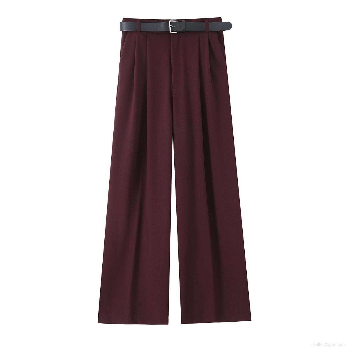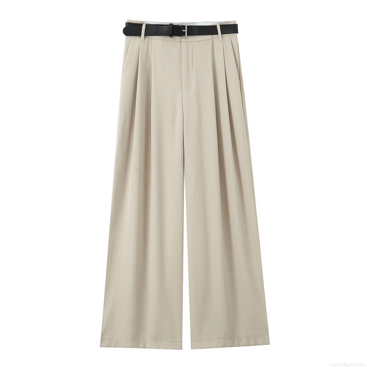 • Women High Waist Wide Leg Trousers With Belt Casual Office Commute Double Pleated Loose Long Pants Polyester Suit Fabric Pants