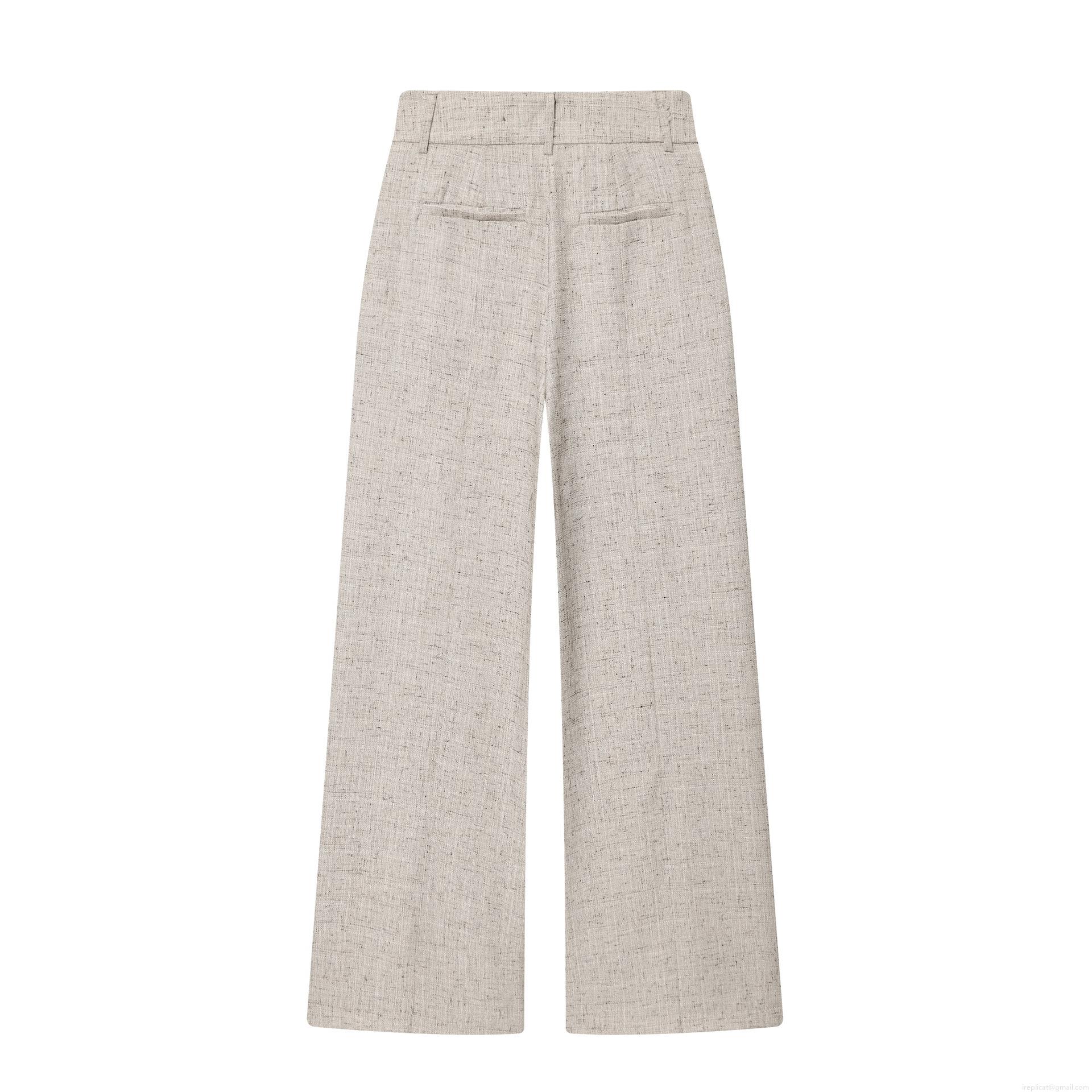 • Women High Waisted Wide Leg Pants Khaki Oatmeal Polyester Trousers Casual Loose Fit Office Lady Solid Color Fashion Bottoms