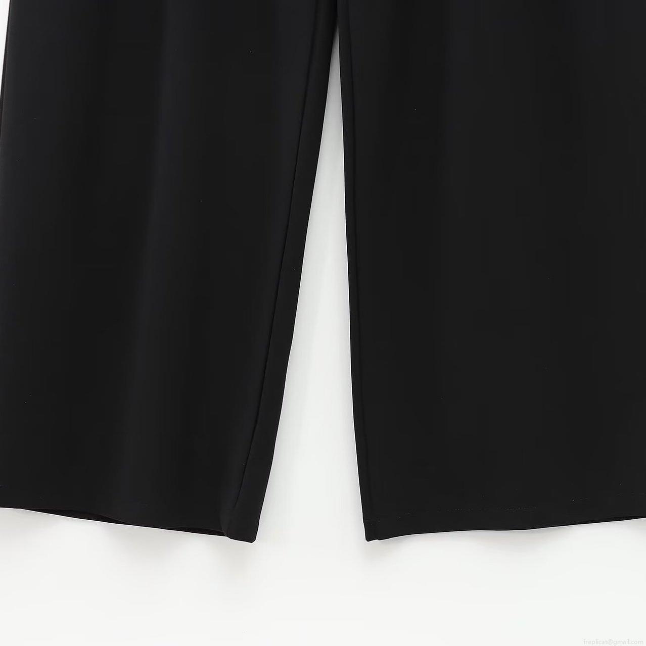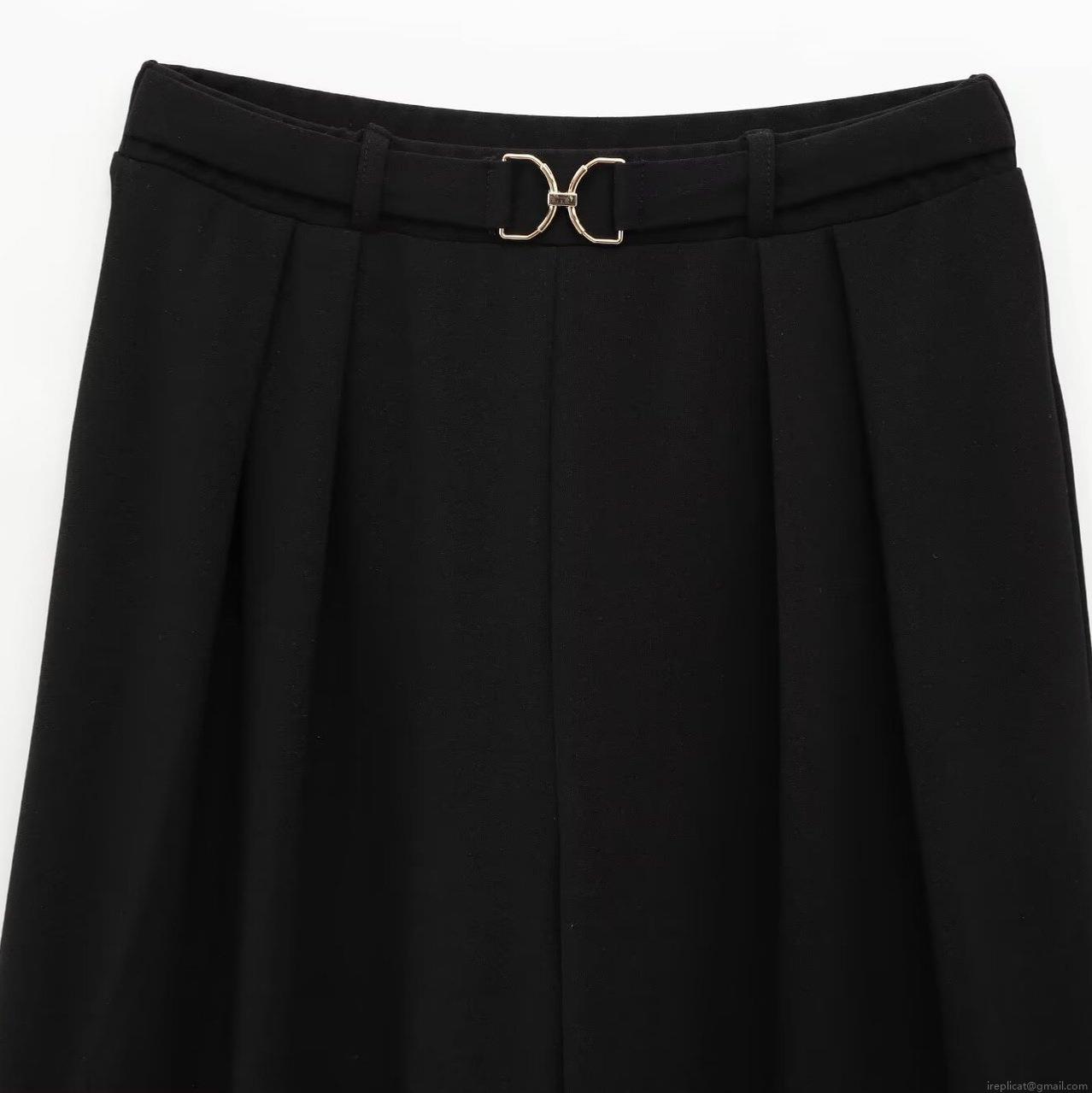 • Women High Waisted Wide Leg Pants With Metal Buckle Decor Casual Straight Trousers Solid Color Office Lady Long Pants Polyester Spandex Trousers