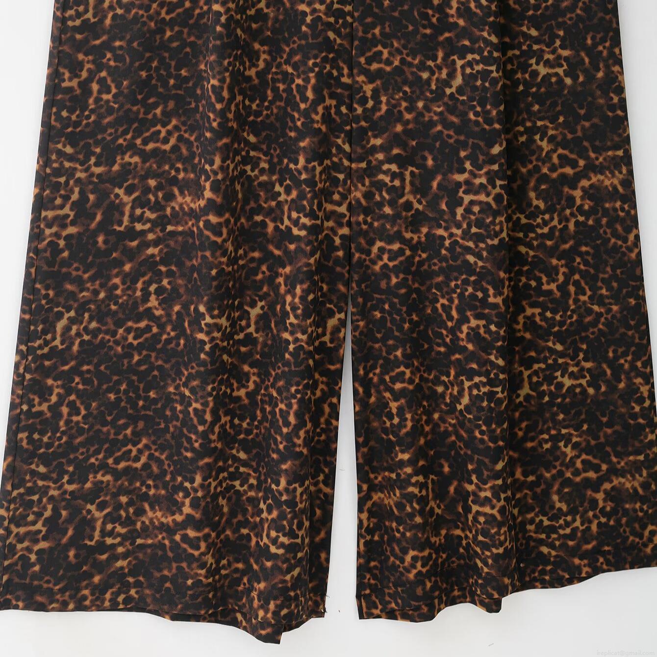 • Women Leopard Print Wide Leg Pants High Waist Loose Autumn Casual Trousers Long Flowy Culottes With Side Pockets