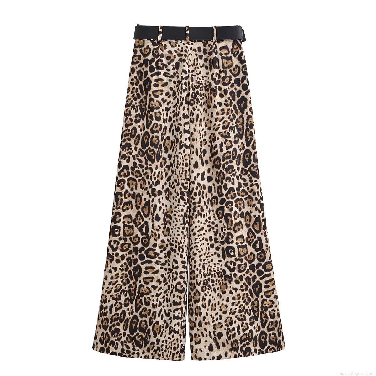 Leopard Print, Animal Print, Printing, Wide-leg, Metal Buckle, Leather Belt